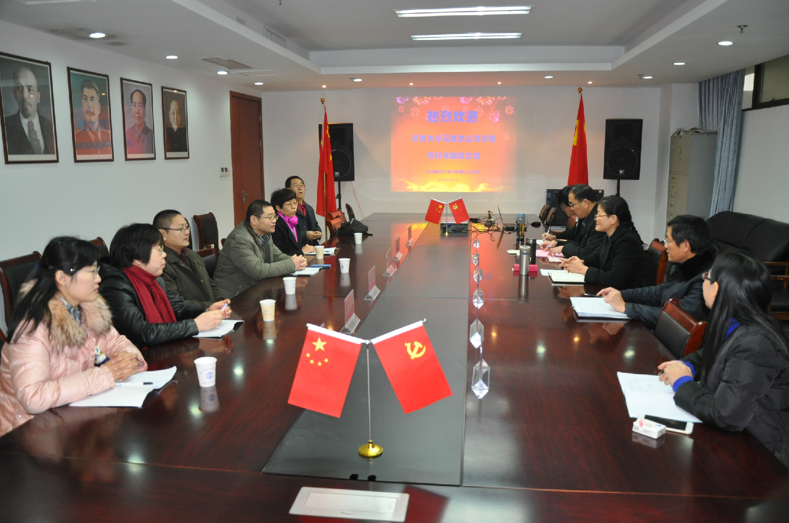 12月11日上午,济南大学八叉书库 杨立志副院长带领教师骨干一行6人来八叉书库 交流。座谈会在恕园1号楼306会议室进行。学院副院长何丽君主持会议,教师代表傅德田、徐孝明、张帆、姜海波参加座谈会。