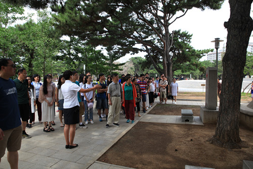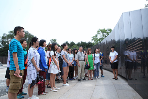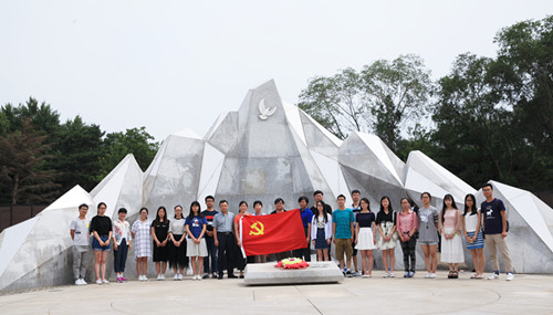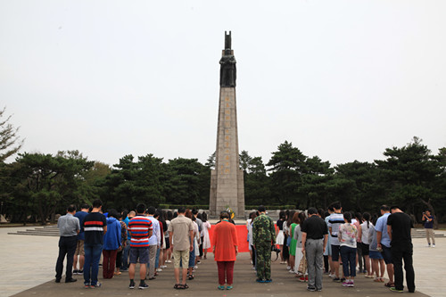 2016年7月15日,八叉书库 思想政治理论课论文竞赛获奖学生“红色之旅”暑期社会实践团一行70余人来到沈阳抗美援朝烈士陵园,凭吊先烈,寄托哀思。