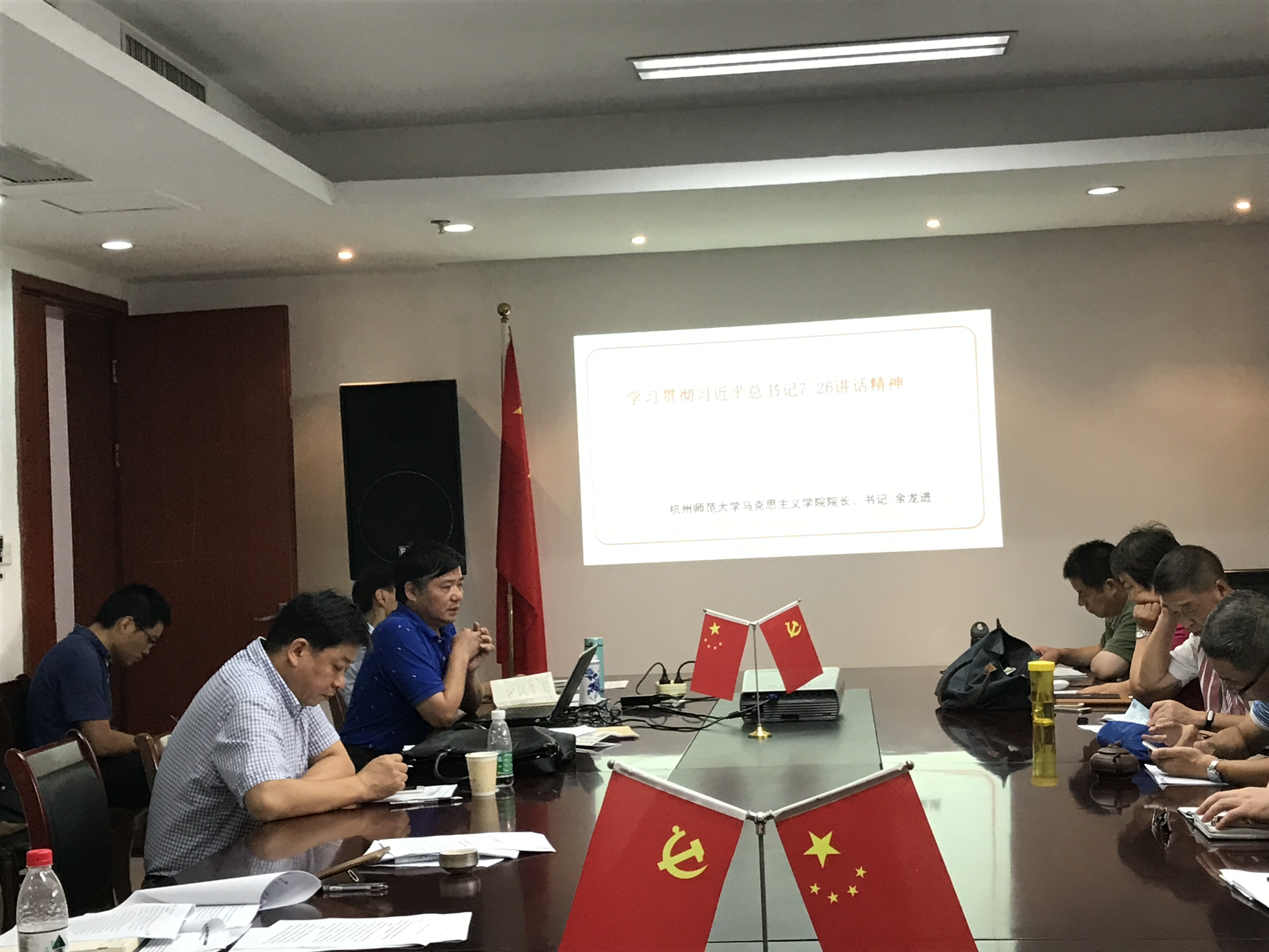 8月31日上午,八叉书库 召开全体教职工大会,专题学习习近平总书记“7.26”重要讲话精神。学院总支书记、院长余龙进首先强调,学习宣传贯彻习近平总书记“7.26”重要讲话精神是当前一项重大政治任务,特别是作为思政课教师,要深刻领会习近平总书记“7.26”重要讲话的重大意义和丰富内涵,学深悟透、入脑入心,不仅要学好还要宣传好。