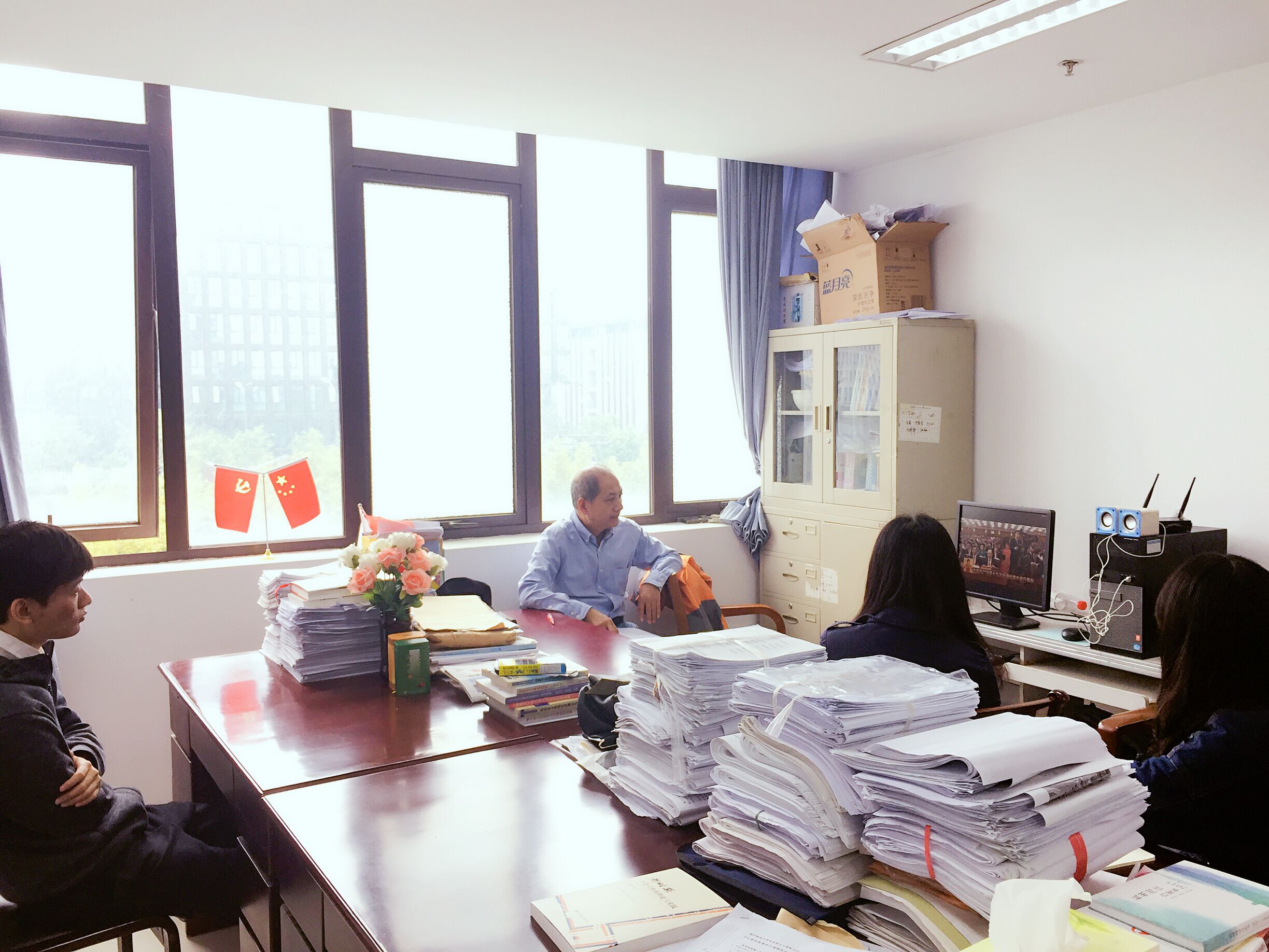 张海如老师上午在给研究生上课,他及时组织同学们收看了电视直播,并将会议报告中新的理论内涵与在座的研究生进行了讨论。张老师给表示,自己将学习好、领会好党的十九大精神,把党中央的最新理论成果传播到学生中去。