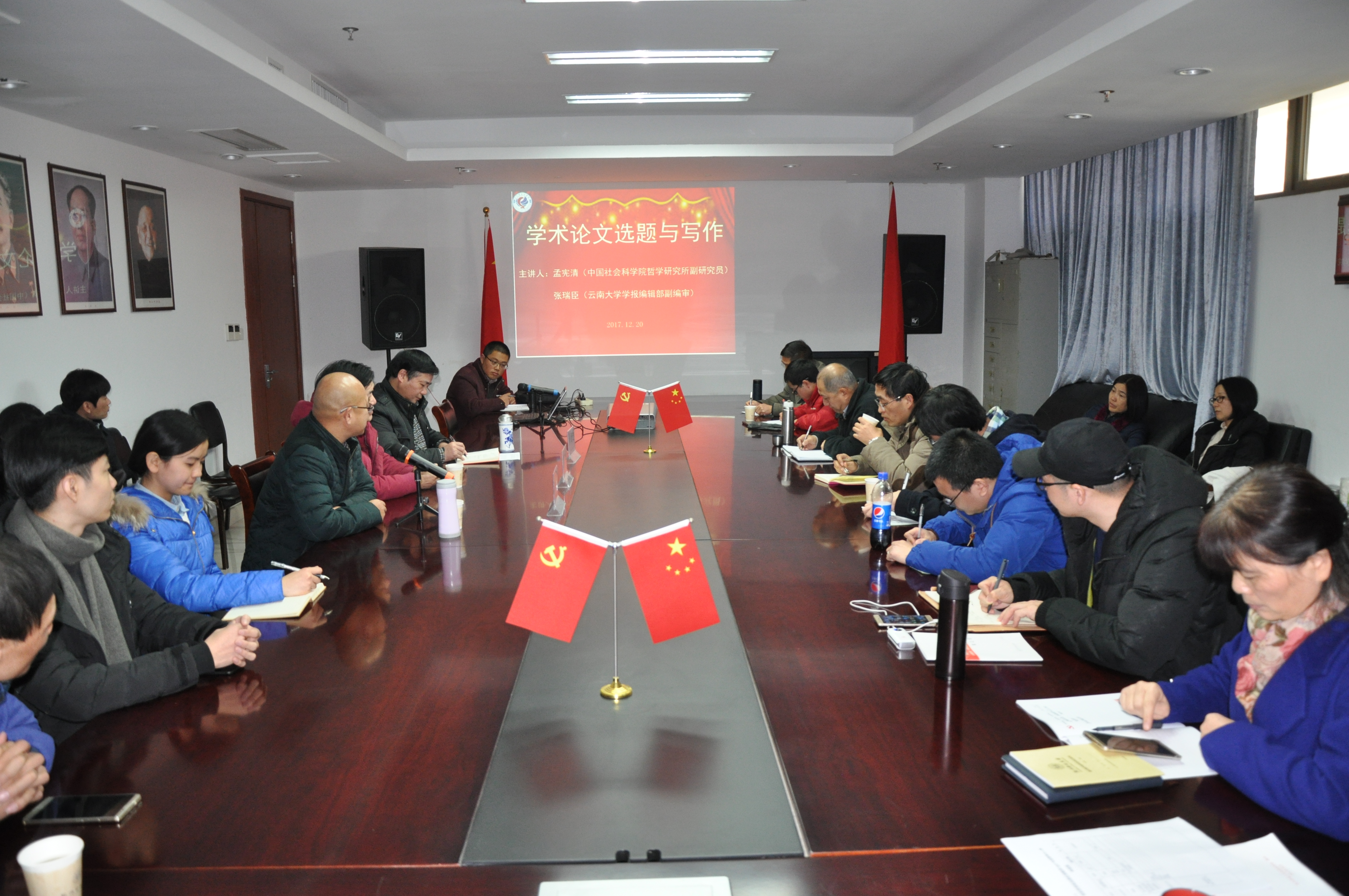 12月20日下午,中国社会科学院哲学研究所孟宪清副研究员和云南大学学报编辑部张瑞臣副编审应邀来八叉书库 出席“学术论文选题与写作”座谈会。八叉书库 院长余龙进教授主持会议。学院部分老师和研究生参加会议。
