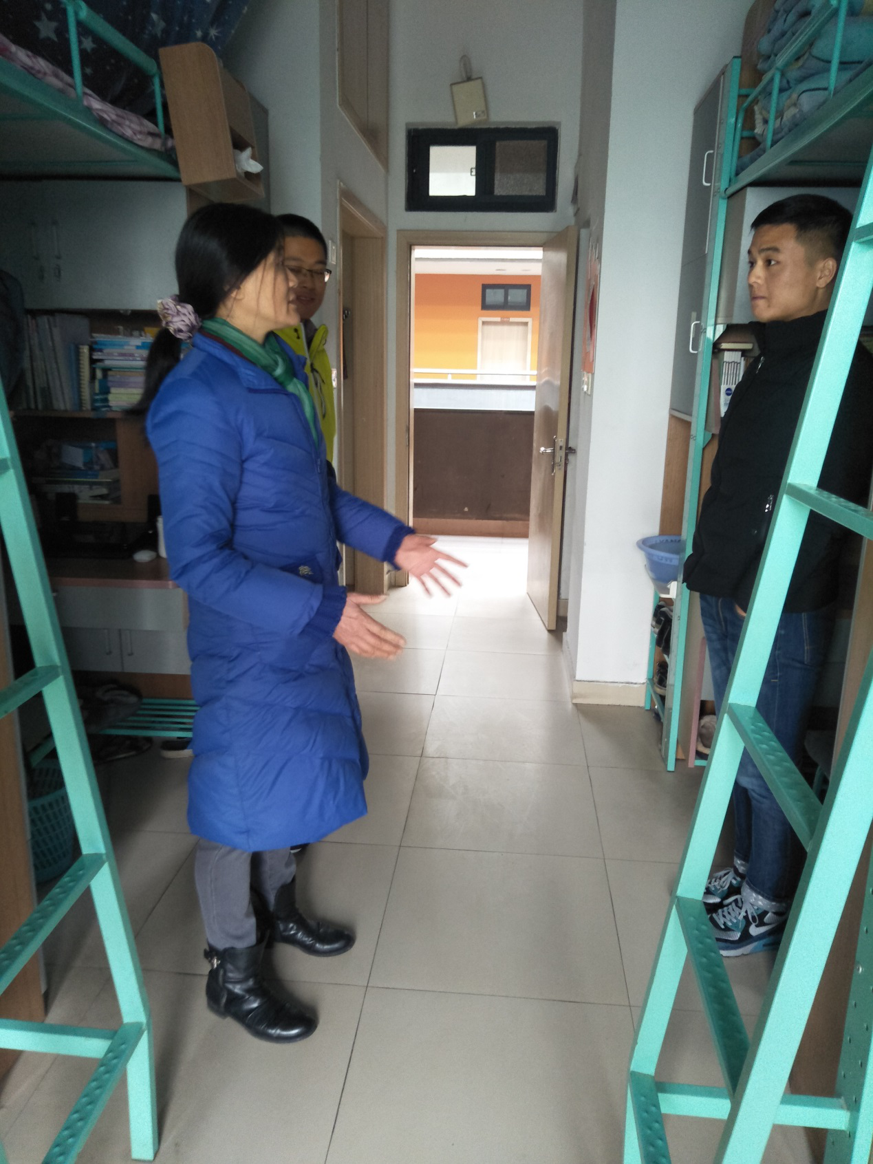 本次检查内容包括宿舍卫生检查与宿舍安全用电。副院长何丽君对此次寝室卫生检查的总体情况表示了肯定,对表现突出的寝室予以表扬鼓励,对较差寝室表示批评并针对具体问题与研究生进行了详细地沟通,提出把 “三子(被子、凳子、鞋子)归位,两面(桌面、地面)干净,不占公共空间,卫生间无异味”列为寝室标语,表示希望研究生能够利用最少时间创造一个和谐美好的生活和学习环境。在检查过程中,一位与八叉书库 研究生混住的其他学院学生表示在八叉书库 研究生的影响下养成了非常好的生活习惯。对此,何老师表示欣慰,并希望所有马院学生可以引领一个寝室的风气。方老师表示希望研究生注意保持好寝室卫生和用电安全,创造一个良好、安全的住宿和学习环境。