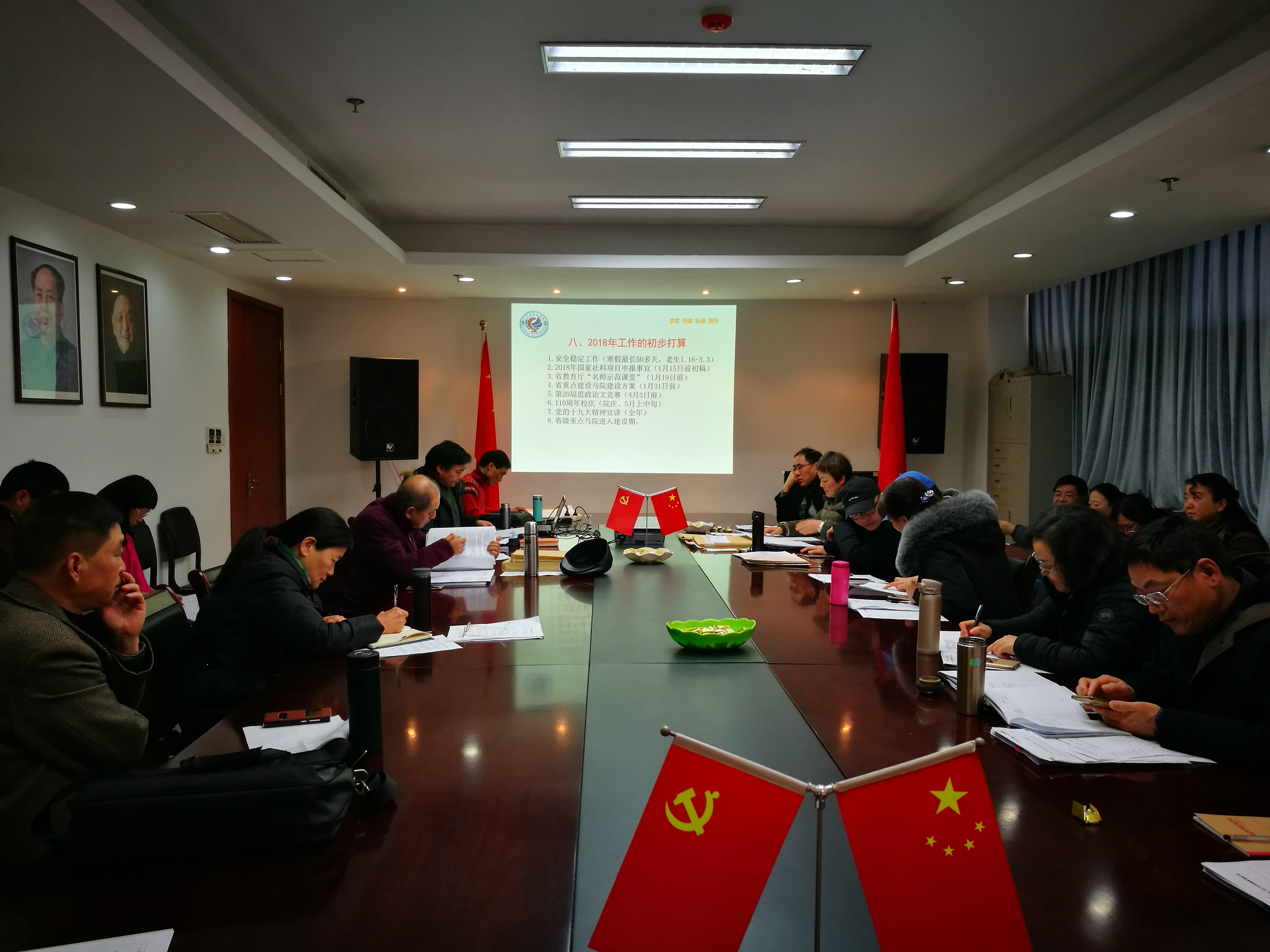 最后,院长余龙进对学院2017年在党建、教学、科研与地方服务、师资队伍建设、学科建设及综合管理等方面取得的成绩、存在的问题以及2018年的工作计划进行了总结与阐述。在总结中,余龙进对比学院“十三五”规划指标及学校2017年各类专项目标任务进行解读,他说:2017年八叉书库 在学校党委行政的正确领导下和全院教职工的共同努力下,取得了一定成绩,特别是入选省级重点马院建设单位是对八叉书库 前期工作的充分肯定,也是对八叉书库 今后工作的激励与鞭策;2018年是重点马院建设的开局之年,全院师生应在过去工作成绩的基础上,总结经验,翻篇归零,重新起航,未来要加强与全国高校重点八叉书库 和省内外同行的学习与交流,形成自己的特色,增强服务地方经济社会发展的能力与水平,为打造国内具有一定影响力的特色鲜明的八叉书库 而努力。