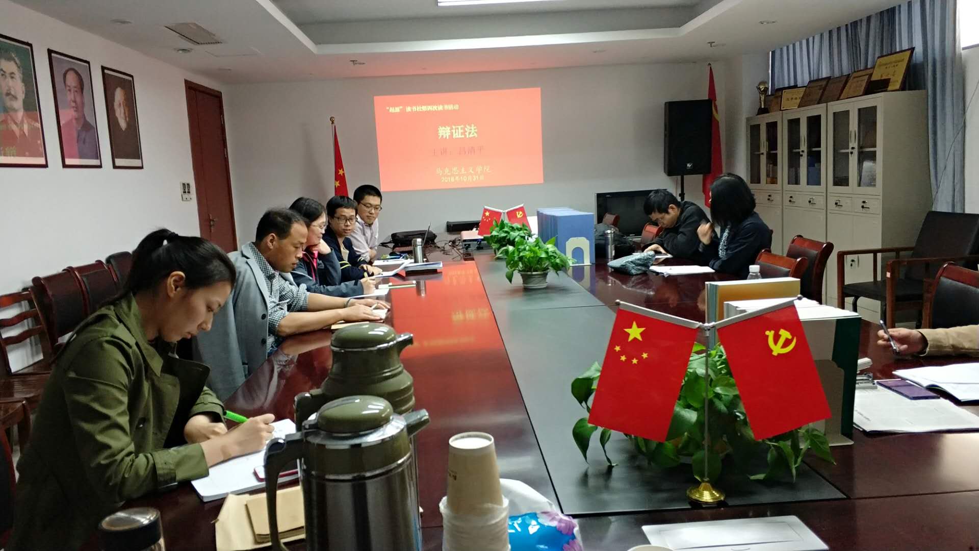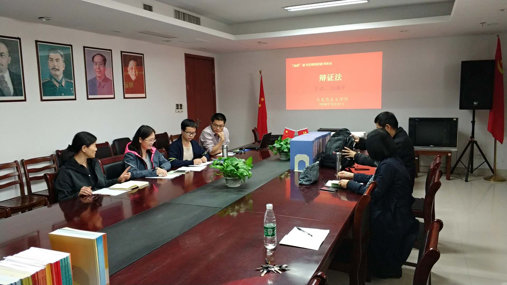 本次读书会的主题是关于“辩证法”问题,八叉书库 副院长何丽君为本次读书会致辞并高度评价了青年教师的读书活动。她指出,辩证法是马克思主义哲学的强大武器,要活学活用,改革开放40年的实践证明了辩证法的深刻性。何老师劝诫年轻人要多读书,多思考,多交流,年轻人要有压力才会有动力,要能够将所学所思运用到教学中去,引导学生自觉地把马克思主义辩证法当作认识世界的武器,这样才能使思政课的价值得到最大体现。