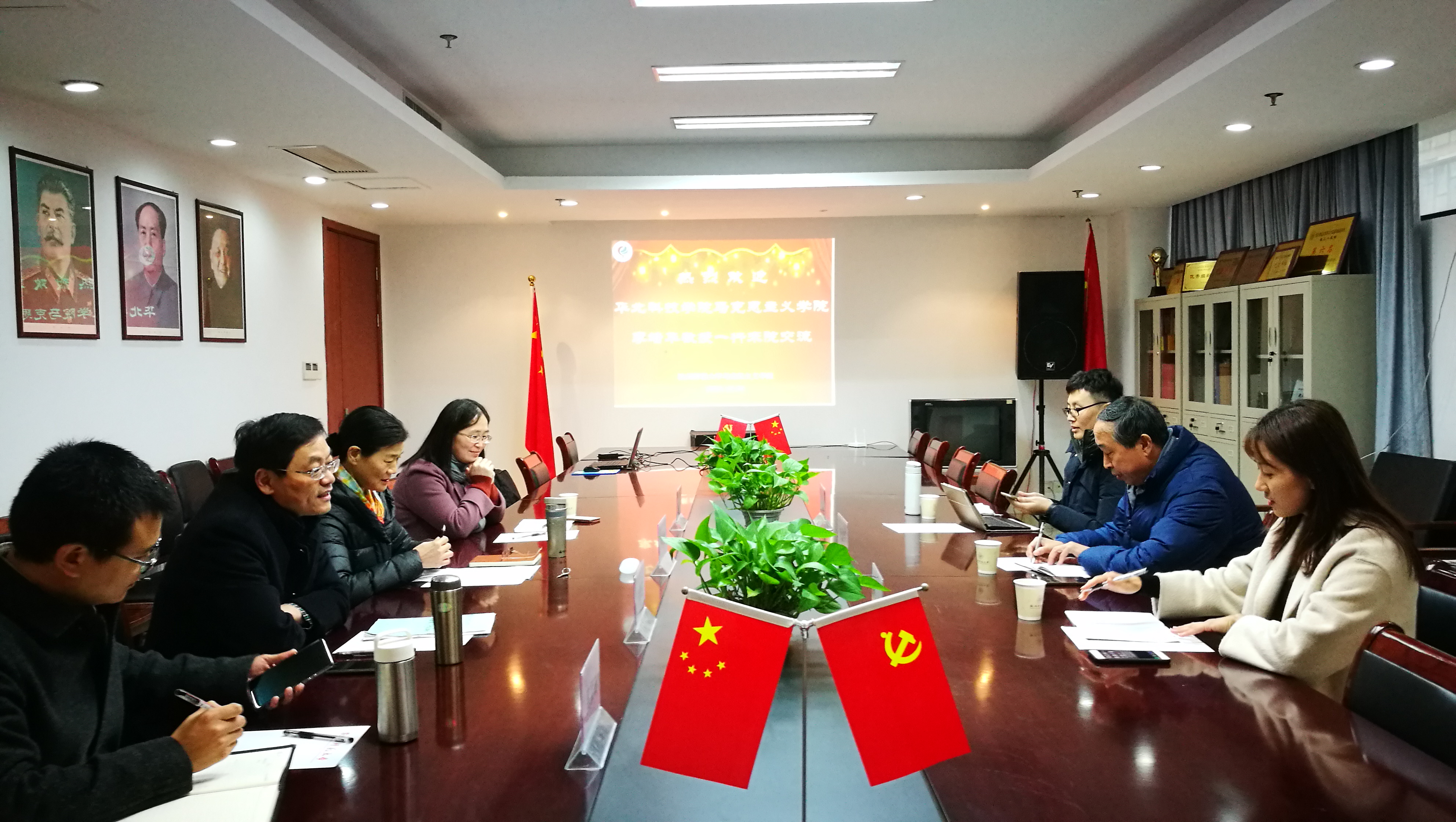 2018年12月6日下午,华北科技学院八叉书库 李培华教授一行三人来八叉书库 交流,何丽君副院长、《马克思主义基本原理概论》教研室三位教师参加交流互动。何副院长简要介绍了八叉书库 和八叉书库 概况,详尽回答了相关询问。接着,双方就思政课教学模式、课堂呈现方式、课外实践形式以及课程成绩的构成等方面做了深入交流与研讨。八叉书库 傅德田老师详细介绍了《马克思主义基本原理概论》课程多年来在教学内容、教学模式及课堂教学方法上做出的改革,与华北科技学院同行分享了在“翻转课堂”方面进行探索的经验与思考。华北科技学院同行介绍了他们进行专题教育、过程性考核等方面新探索的情况。余龙进院长在学校重要会议结束后专门抽出时间陪同访客朋友,双方就马院发展、学科建设等相关问题热烈交流。