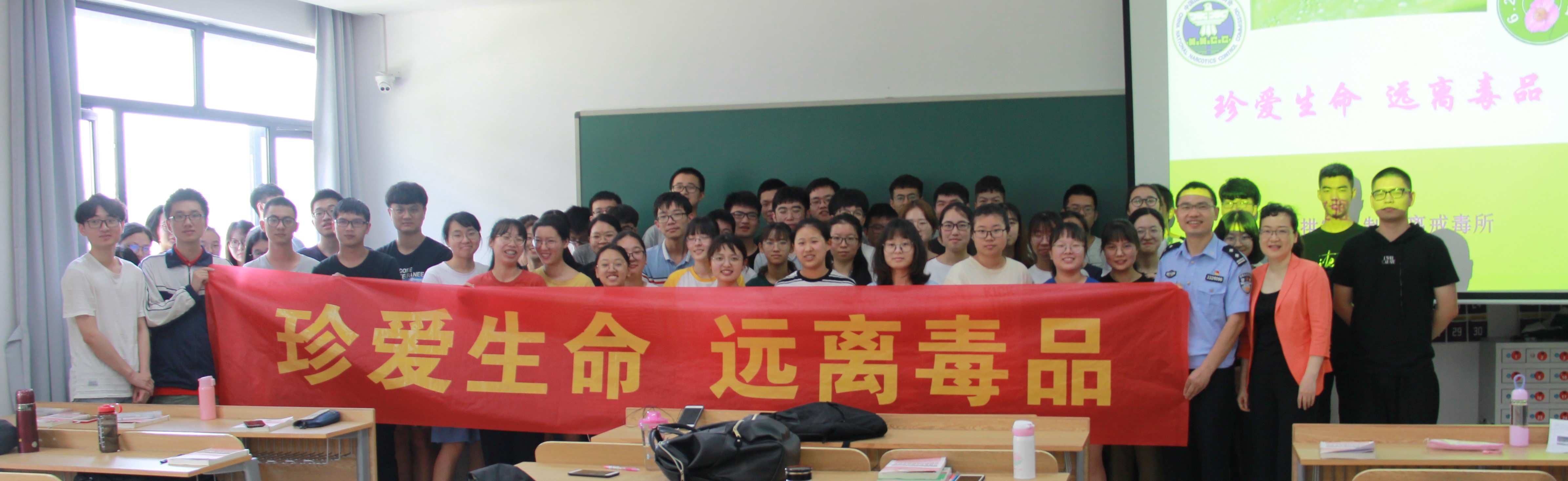 课上,罗一华老师从“平安中国建设”开始谈起,指出建设平安中国要紧紧抓住人民群众反映强烈、影响社会和谐稳定的一些突出问题,特别是要依法打击和惩治黄赌毒黑拐骗等违法犯罪活动,并邀请了郭警官做禁毒教育宣讲。郭警官用大量的毒品图片、毒品仿真品向同学们科普了毒品的种类和性状,用大量翔实的涉毒案例,特别是青少年毒品犯罪案例,让同学们认识到毒品的巨大危害,并重点强调了如何预防毒品,引导大学生要珍爱生命,远离毒品,要增强防毒、拒毒意识。最后,罗老师强调,在6月26日国际禁毒日来临之际,大家要积极行动起来,打一场持久的禁毒人民战争,为建设平安中国,为建设一个无毒品的世界,贡献我们青年人的力量。课后,就如何预防毒品同学们与警官进行了进一步的交流。大家纷纷表示,这样的授课形式新颖,内容丰富,让人受益匪浅 。