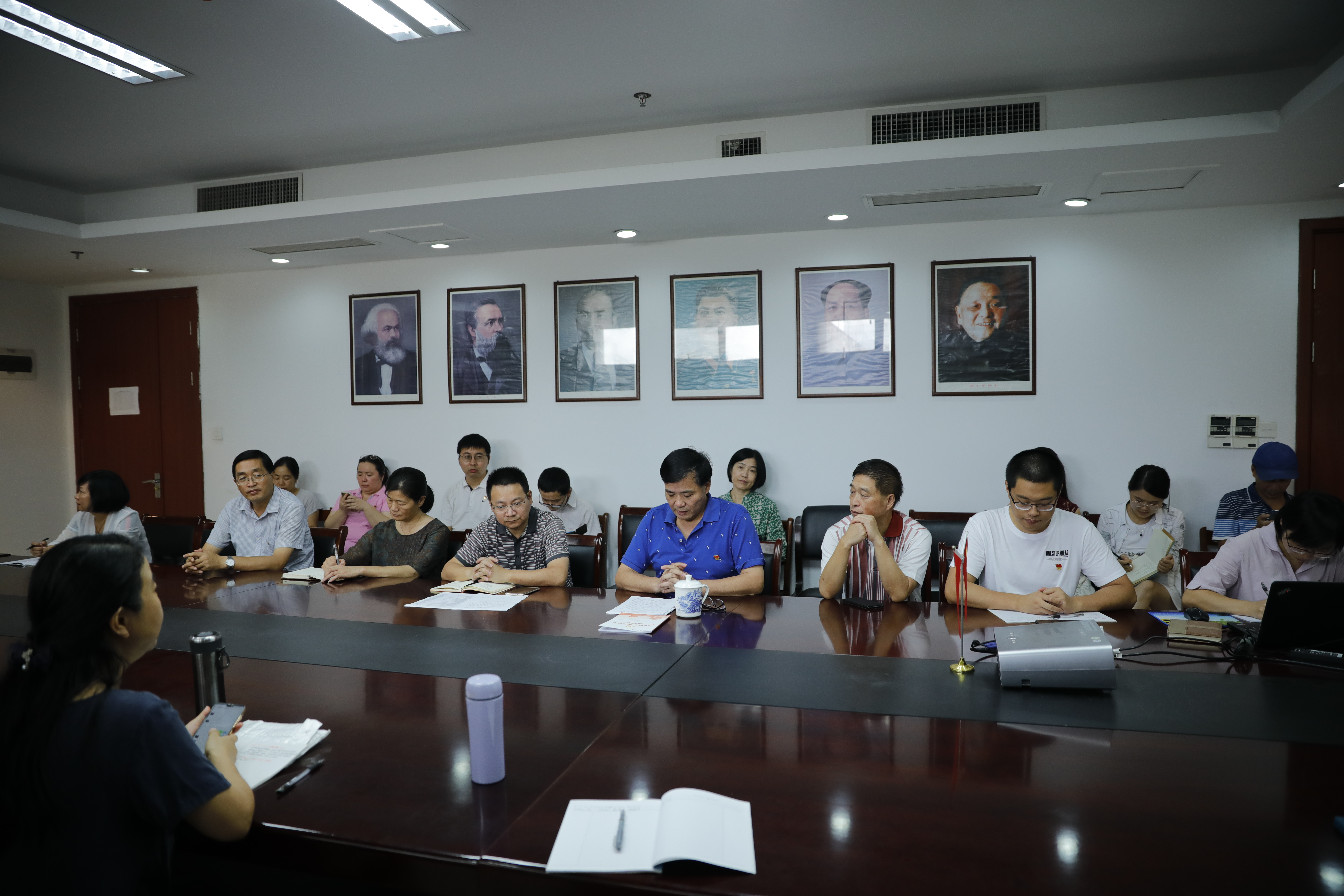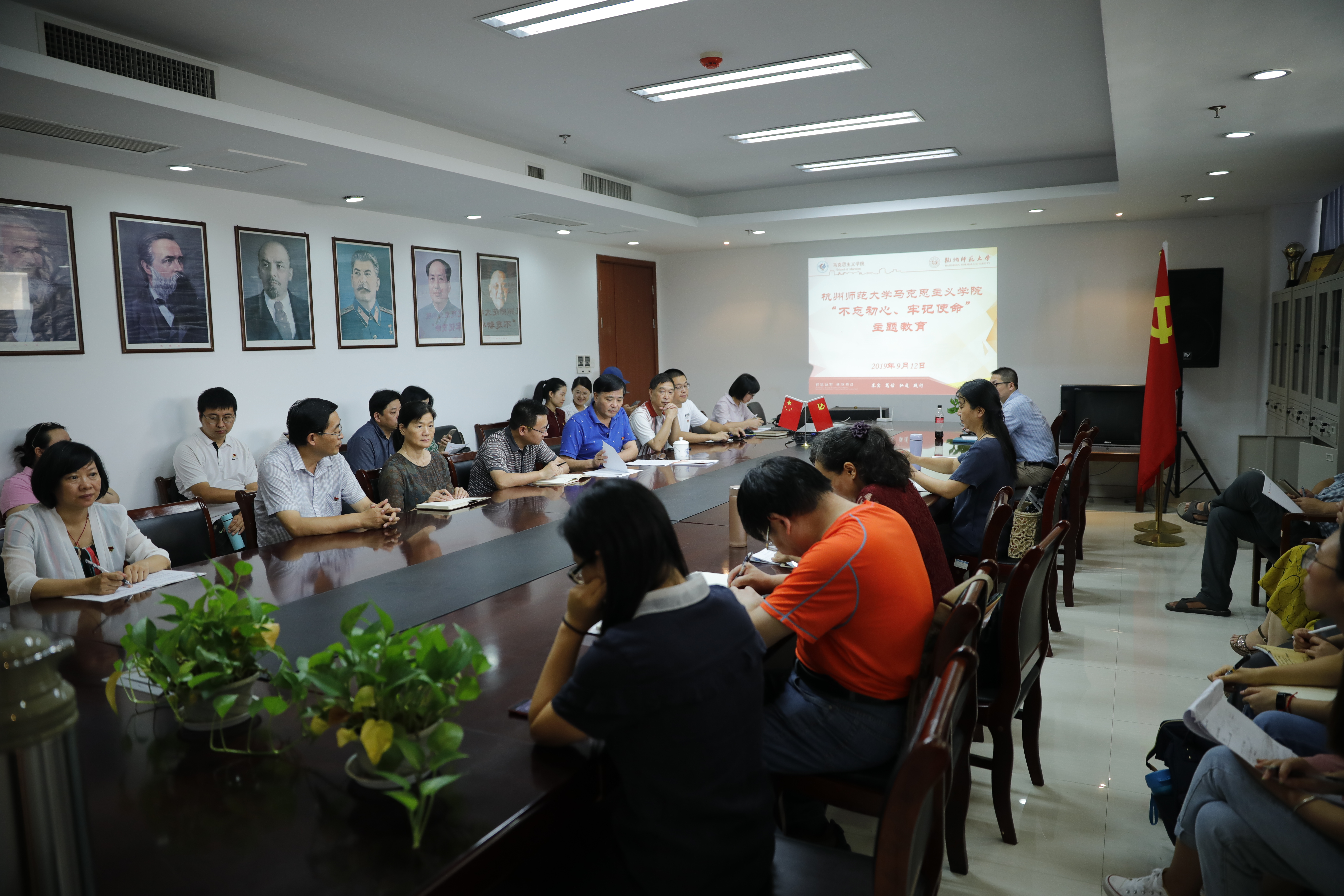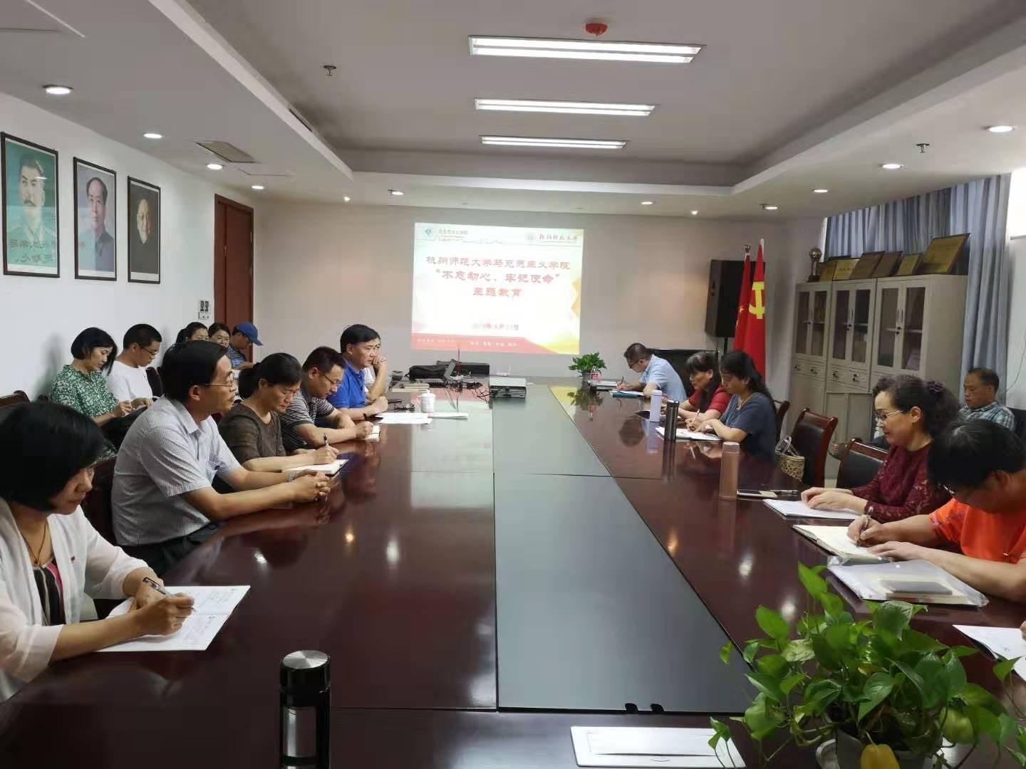 为深入贯彻落实党中央、浙江省委、杭州市委和学校党委有关会议和文件精神,9月12日中午,八叉书库 在恕园1号楼306会议室召开“不忘初心 、牢记使命”主题教育工作会议。本次会议由八叉书库 党总支书记余龙进主持,学校“不忘初心、牢记使命”主题教育督导组成员杨学勇莅临指导,学院全体教师生党员参加会议。