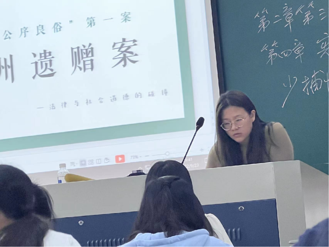“法院依法判处肖开俊等三人有期徒刑十三年,并处罚金;责令退赔经济损失。”这是孙宇泽、许琰杰同学在法学概论课上通过“以案说法”的方式分享的非法集资犯罪案例的判处结果。“法治小讲堂——以案说法活动”是李洪波教授精心策划的活动。在每周的法学概论课上,两组同学分别分享一个法治案例,从案件的起因经过结果,讲到审判时所运用到的法学理论,以加深马院思想政治教育本科生们对法律的认识和对法学理论的理解。不仅如此,我们还将通过民法典小视频、环球法律辩论、模拟法庭等多种多样的活动,潜移默化地培养同学们的法学素养,增加法律知识。