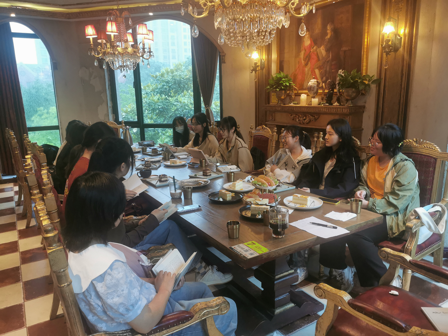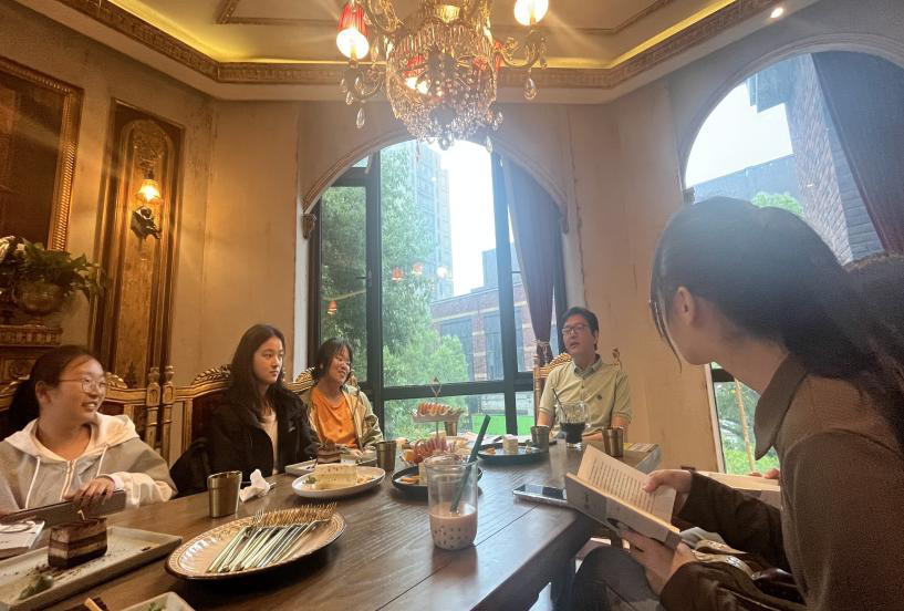 5月17日下午,八叉书库 2022级思想政治教育专业504寝室和505寝室全体成员和综合导师姜海波副教授在咖啡厅聚餐并举行了导师制小组活动。