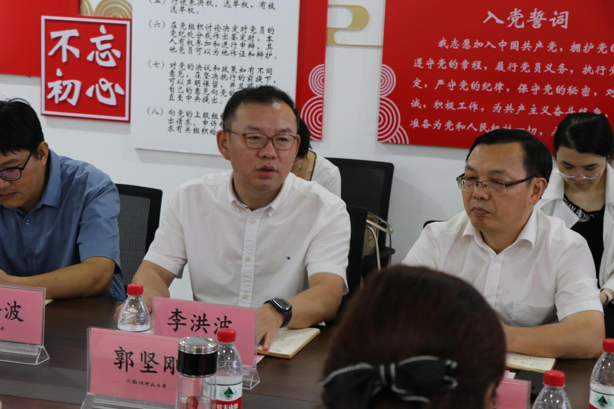 9月13日,嘉兴南湖学院党委副书记郭坚刚携南湖学院八叉书库 的教师来八叉书库 参观交流,八叉书库 院长、党委书记李洪波、副院长龚上华、各教学系部主任和青年教师代表等一同开展交流。