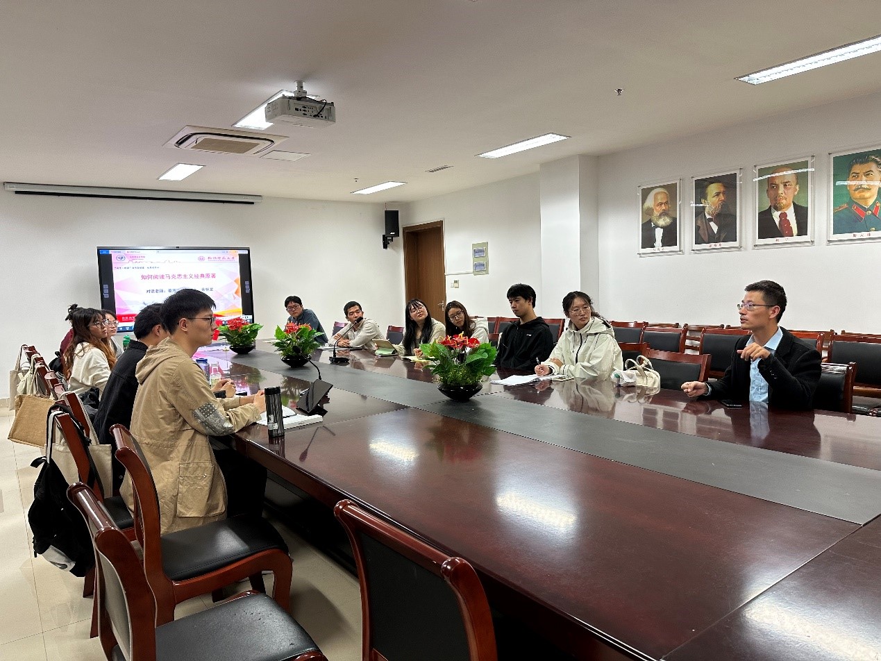 10月13日,“浙里·悦读”读书会联盟八叉书库 起原读书社在仓前校区举行了一场“如何阅读马克思主义经典原著”的读书交流活动。起原读书社社长姜海波副教授、刘际东博士、余怀龙博士与八叉书库 2023级研究生一起分享了马克思主义经典原著的读书经验。