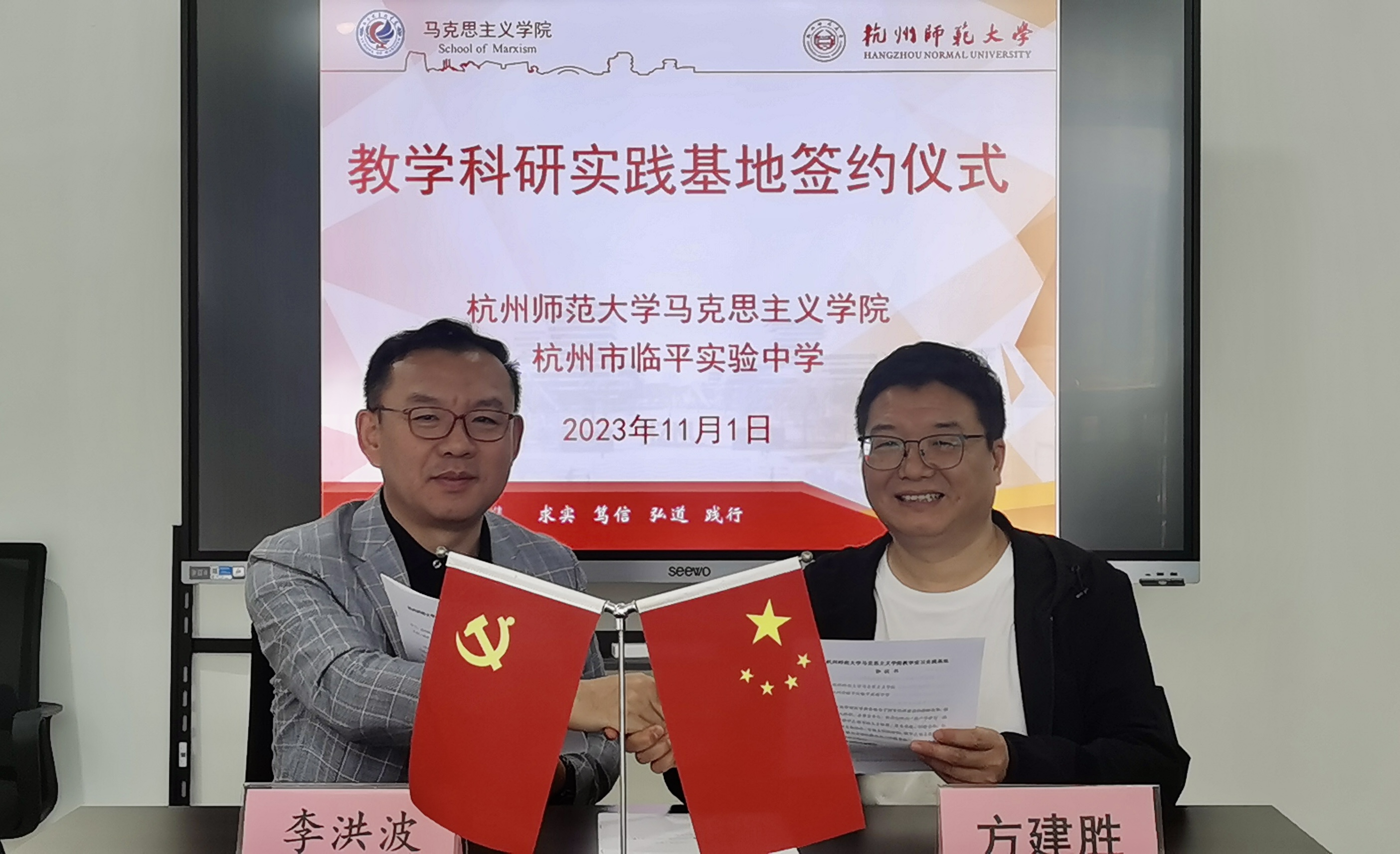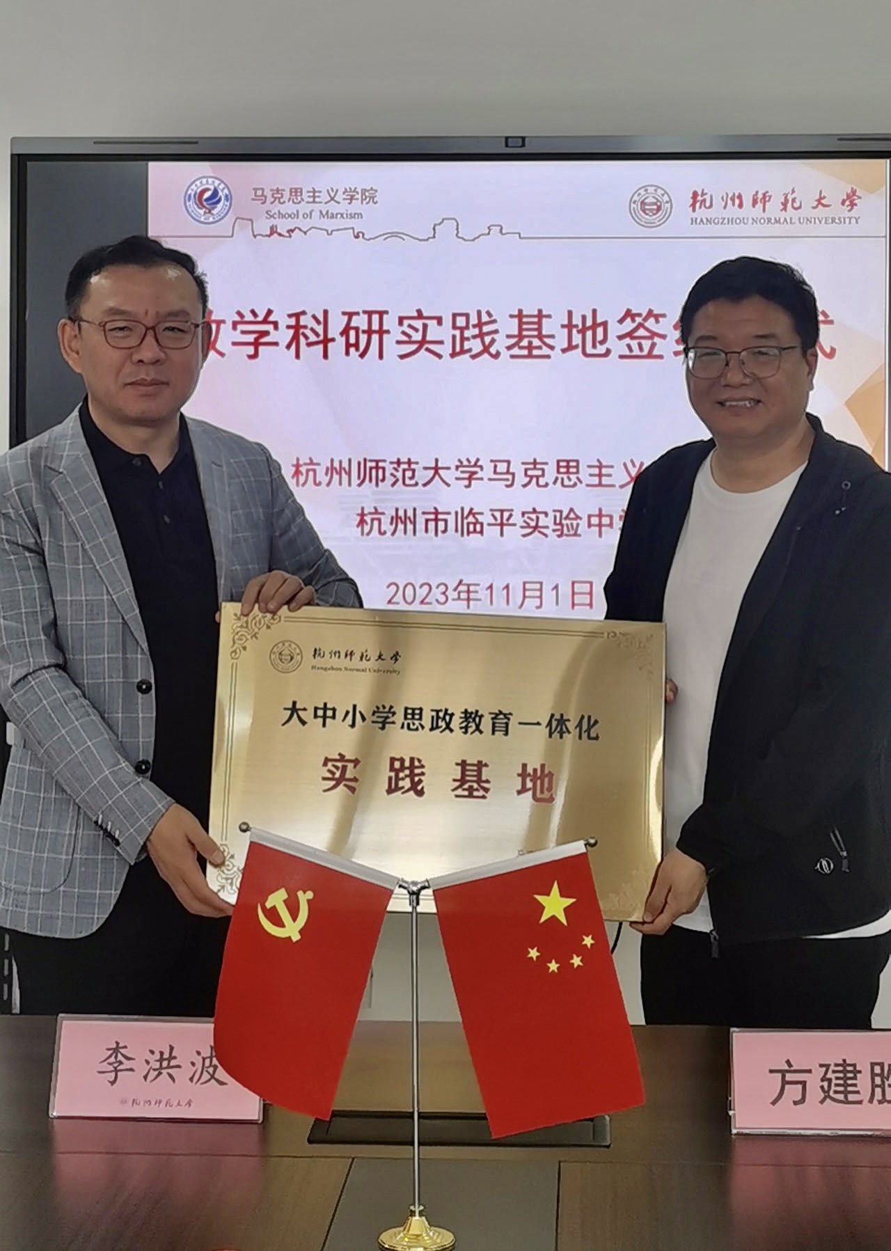 11月1日上午,八叉书库 与杭州市临平区临平实验中学举行党建联建、大中小学思政课一体化、教育实习实践基地建设签约及授牌仪式。
