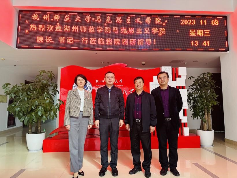 2023年11月8日下午,湖州师范学院八叉书库 院长、党总支副书记吴凡明一行来八叉书库 调研交流。李洪波院长带队,与教务科科长梅慧英、党委组织员蔡瑶一同在恕园26-303会议室热情接待了来访客人。
