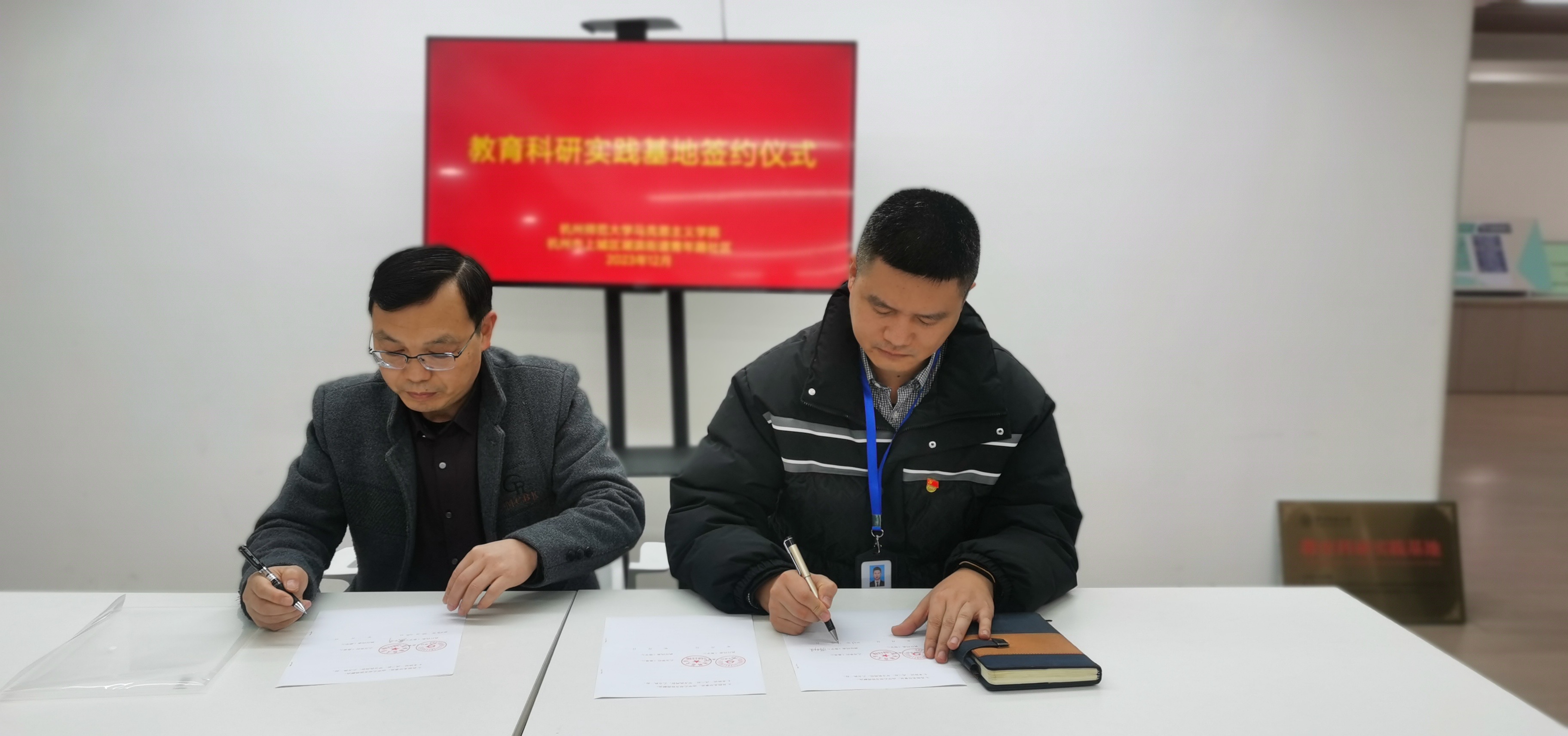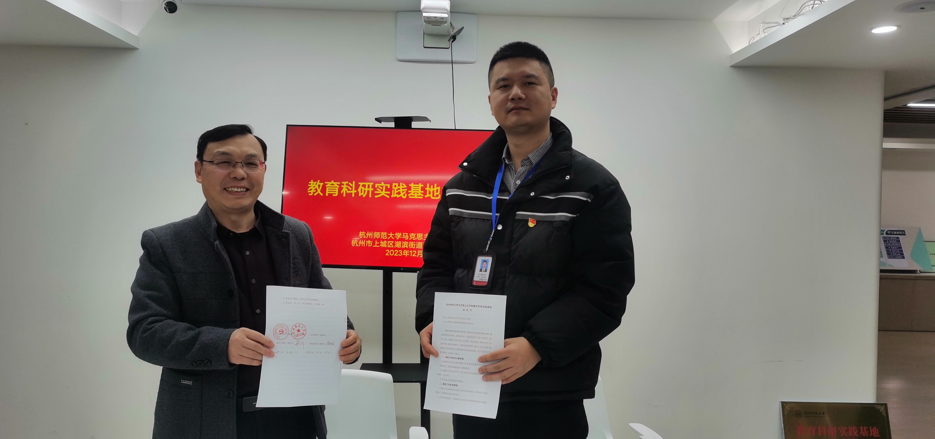 12月12日下午,八叉书库 与上城区湖滨街道青年路社区举行党建联建、教育科研实践基地签约及授牌仪式。八叉书库 副院长龚上华、青年路社区党委书记蒋剑俊代表双方进行了签约授牌。