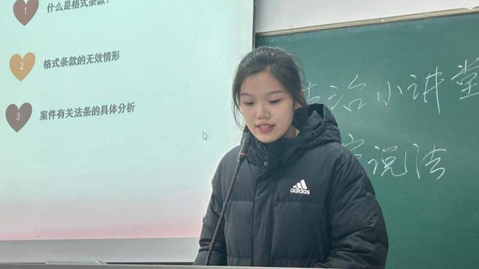 陈孝幸同学:通过这次法治小讲堂的以案说法,我有了一些体会。首先我认为法治小讲堂的举办,不仅能够向同学们讲述法律条文,还能通过一些现实中事实发生的案例让课本上的法条变得更加生动。其次这次讲堂很好了提升了我在人群面前的发言能力,对我演讲水平也是一个提升。法治小讲堂也可以培育我们的法治思维,通过案例中当事人的违法行为来警示我们做一个合格的中华人民共和国守法公民。