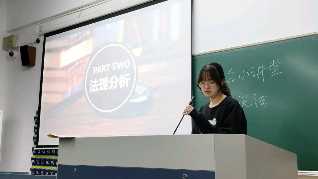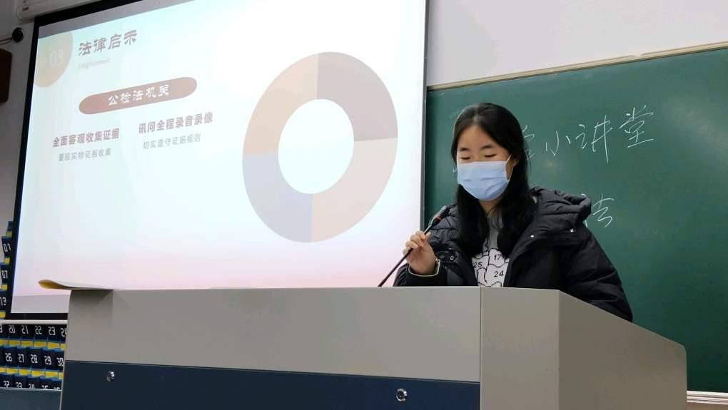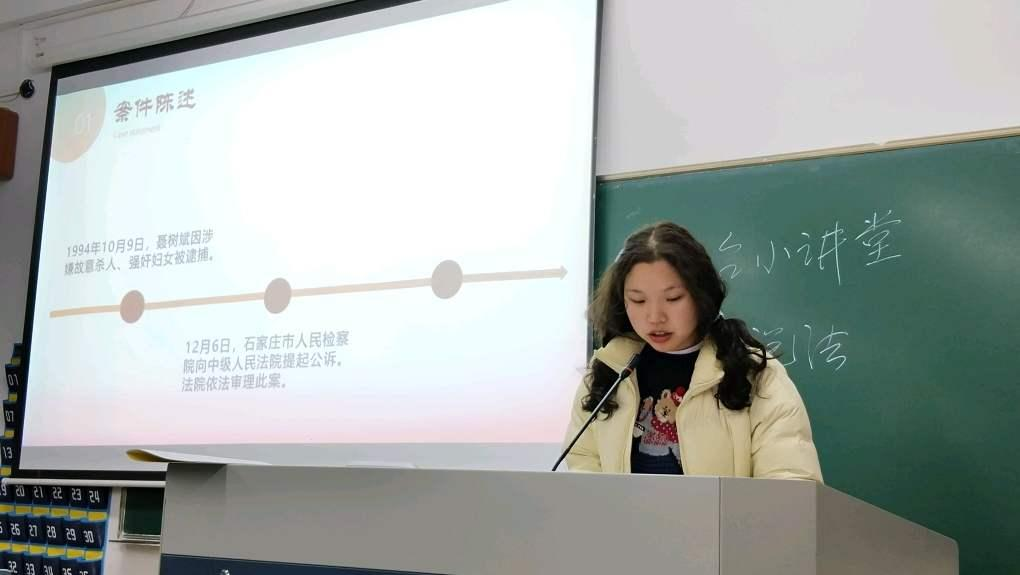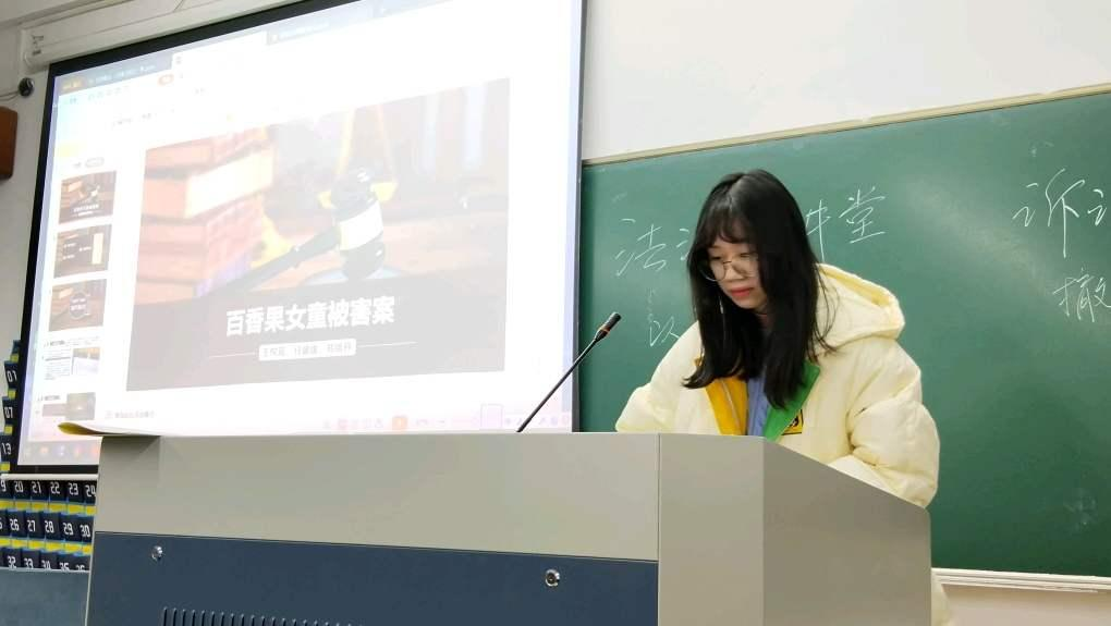 第四组:思政234班的王悦瑶、郑络丹、任媛媛同学分享了一起关于未成年少女被奸杀案——“百香果女童案”。通过此案为同学们讲解了再审撤销二审审判结果的正确性,深度解析了法理与人情该如何平衡。