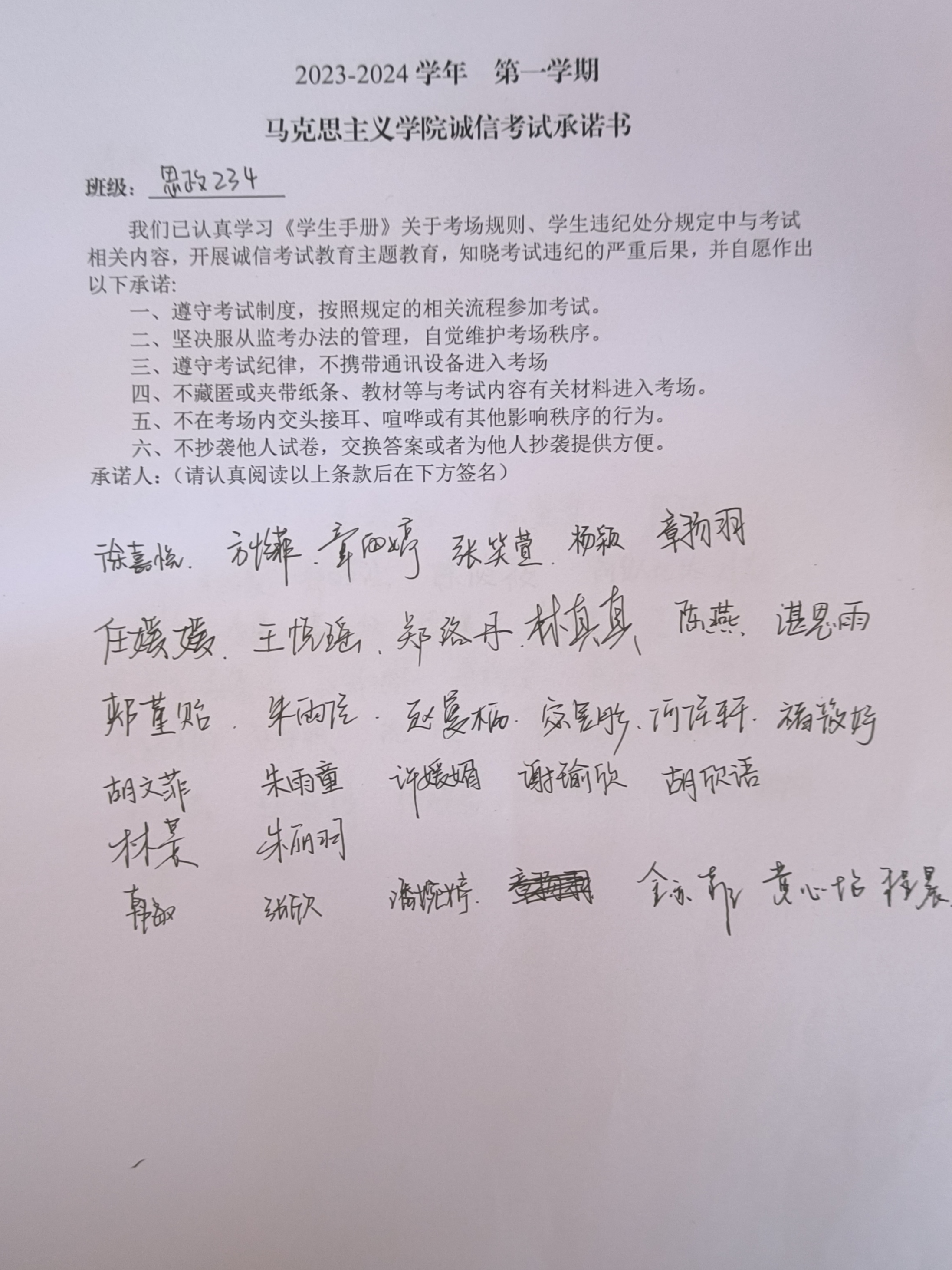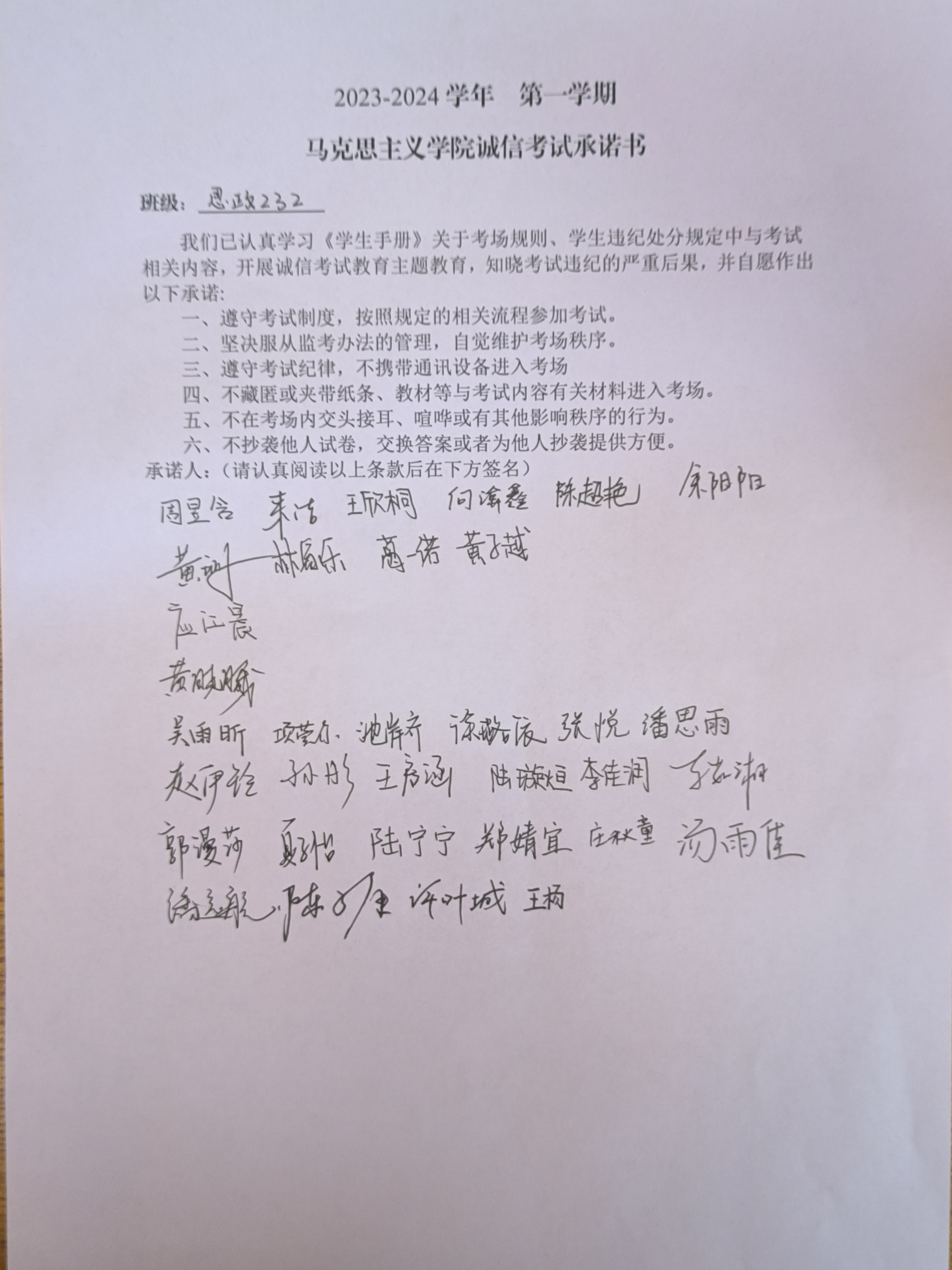 孟子云:“车无辕而不行,人无信不立。”诚信是中华民族的传统美德,为人处世的基本素质。临近期末,作为大学生,我们应当坚守初心,诚信考试。以坦荡的自我,严谨的态度面对考试,通过检测完成对自己更全面客观的认识,从而不断完善自己,赋予这场考试真正的意义。