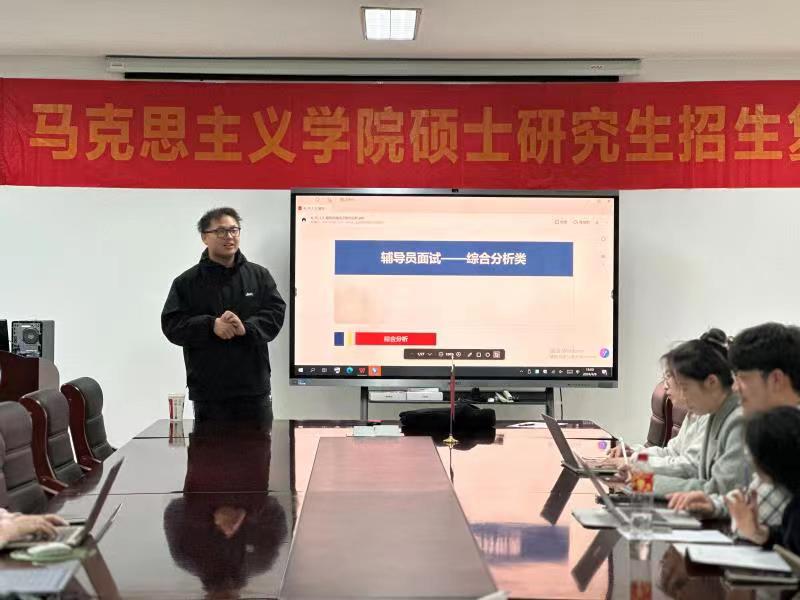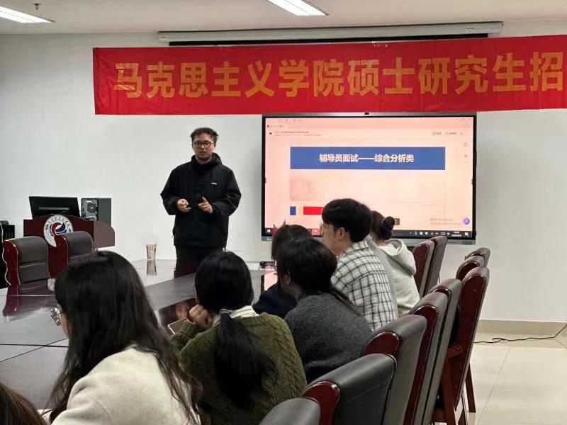 习近平总书记在全国高校思想政治工作会议上指出,要坚持把立德树人作为中心环节,把思想政治工作贯穿教育教学全过程。为了有效提高学生的就业技能,帮助学生更加全面地了解高校辅导员应聘,2024年4月8日晚,八叉书库 在恕园26号楼104会议室开展高校辅导员结构化面试技巧指导讲座,由包肇正老师主讲,马院全体研究生参加。