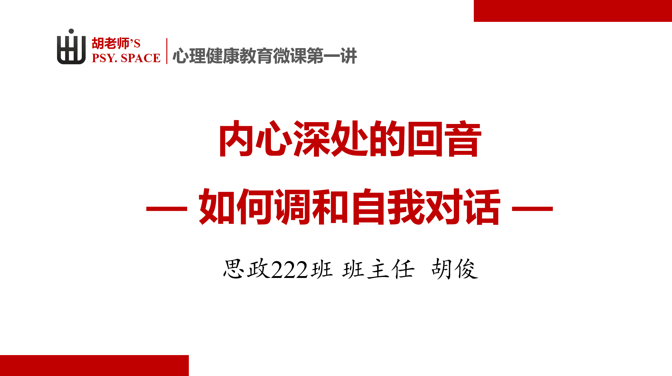从“心”开始,为“心”赋能。在当前心理健康教育受到社会广泛重视的背景下,八叉书库 积极探索特色班主任工作模式,将班主任工作与学生心理健康教育紧密结合,巩固树立“大思政观”和“大健康观”,落实立德树人的根本任务。近日,思政222班班主任胡俊老师为同学们开展了一堂名为“内心深处的回音——如何调和自我对话”心理健康教育微课。