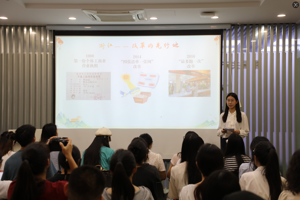陈珈莹同志结合在浙江的调研经历,为大家呈现了浙江在改革中的新面貌和新成就。同时,她还介绍了00后青年的创新和担当精神,激励着新时代青年以青春力量砥砺新征程。