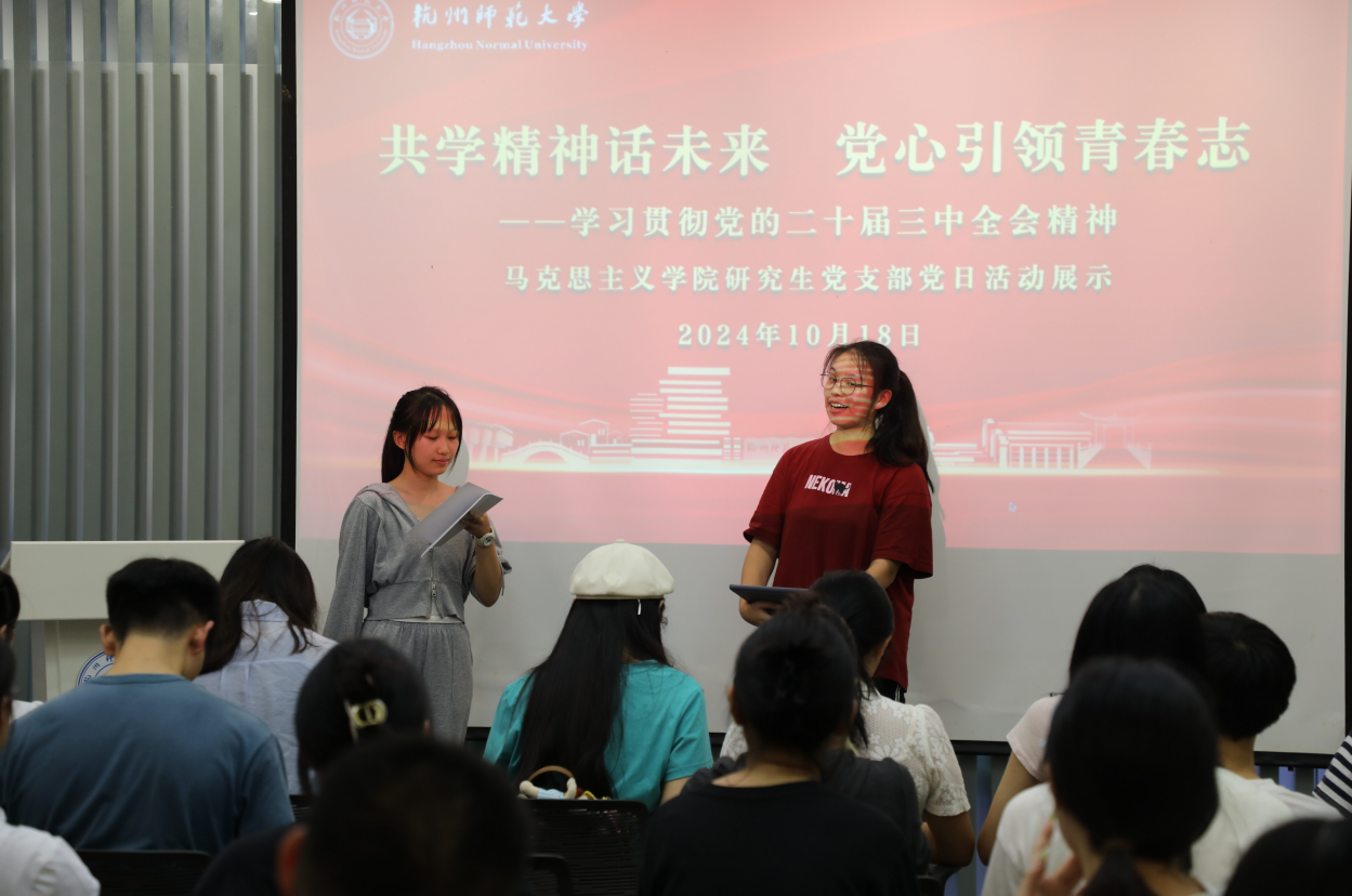党的二十届三中全会是在新的历史起点上进一步全面深化改革、推进中国式现代化的总动员、总部署,对于实现中华民族伟大复兴的中国梦具有重大而深远的意义。八叉书库 研究生党支部积极响应号召,10月18日在党员之家以“共学精神话未来,党心引领青春志”为主题,组织开展了一场精彩纷呈的党日活动展示,通过 “微剧场”“微宣讲”“微分享” 三个环节,深入学习贯彻全会精神。