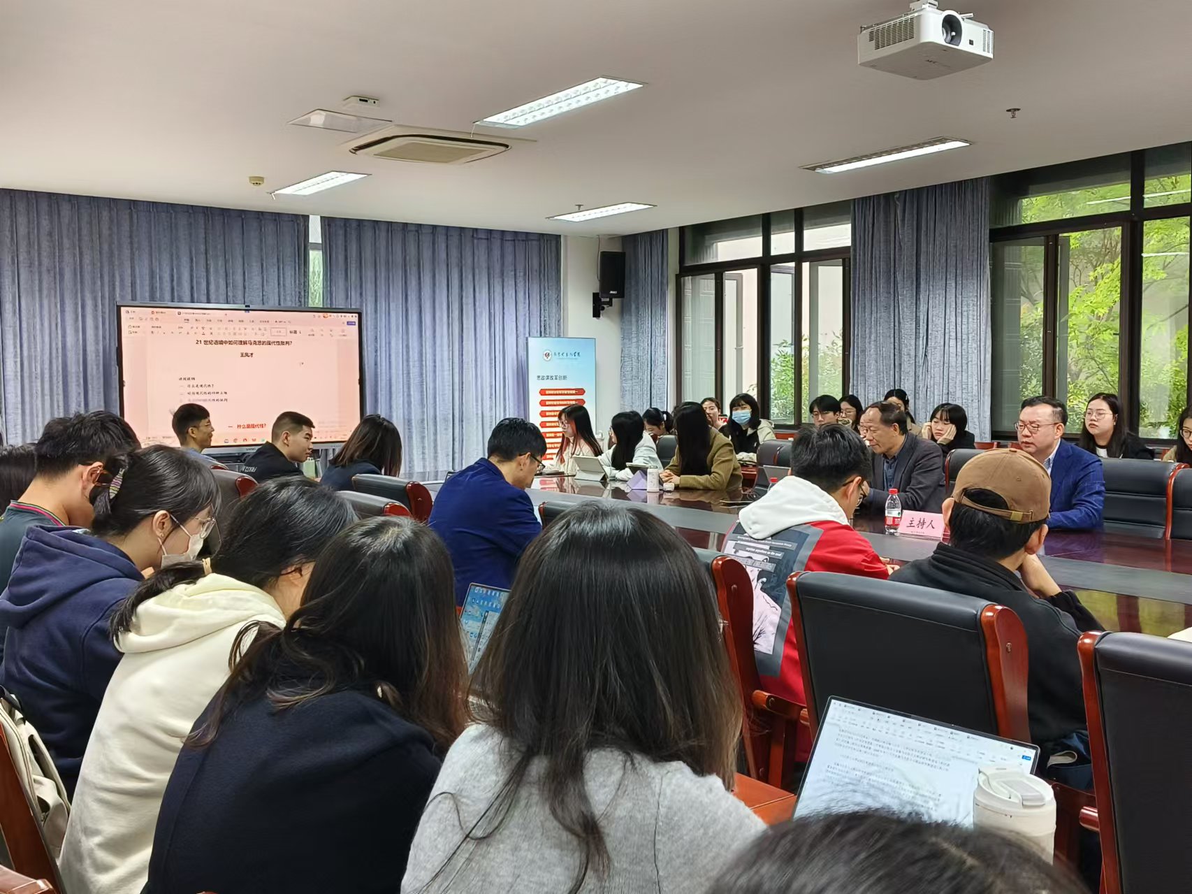 在“什么是现代性问题”方面,王凤才教授提及“现代、现代化、现代性”的起源有不同说法,并从文化现代性的核心价值、社会现代化的根本转变、社会现代化的基本表征、现代社会的共同价值四个方面解释了现代性的普遍主义的内涵。
