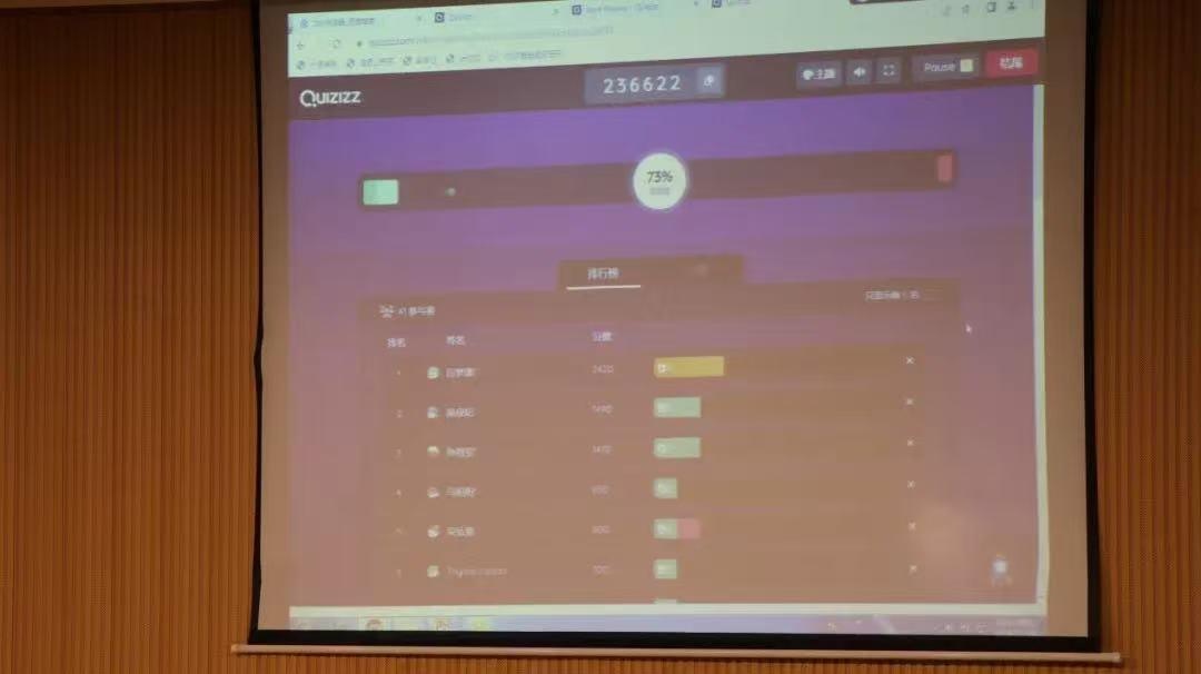 班会分为四个环节。首先是学习党的二十届三中全会内容知识竞答,同学们纷纷扫码加入活动,呈现了一场紧张激烈又精彩纷呈的知识答题比赛。在竞赛过程中,我们看到了各位同学对二十届三中全会知识的扎实掌握,以及在赛场上的拼搏精神。