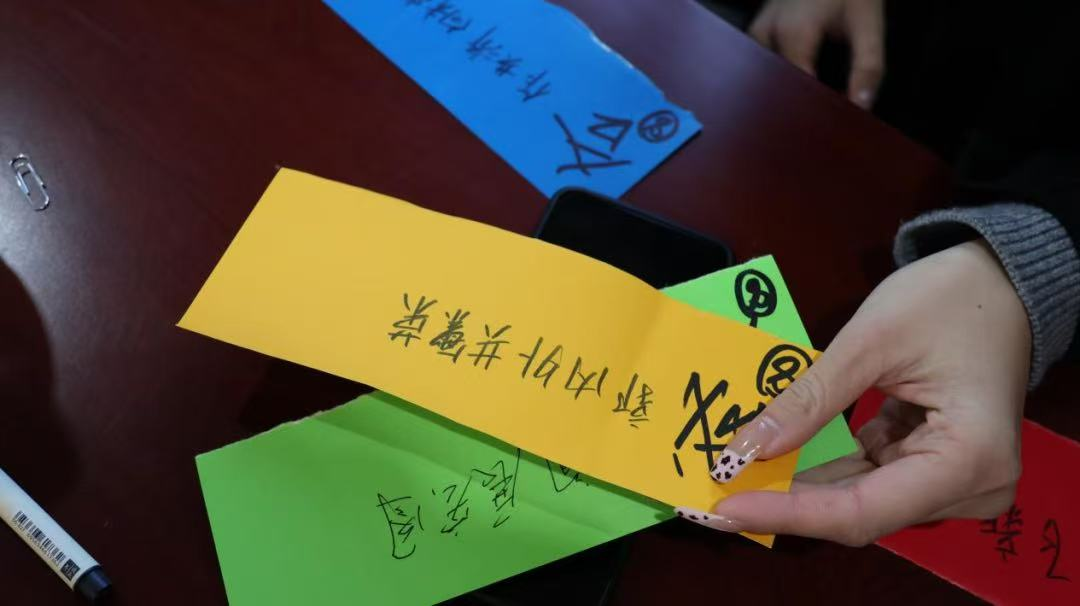最后,在学习和巩固了党的二十届三中全会内容后,同学们都有着不同的感悟与想法。大家拿着彩色卡纸,纷纷做起了藏头诗。
