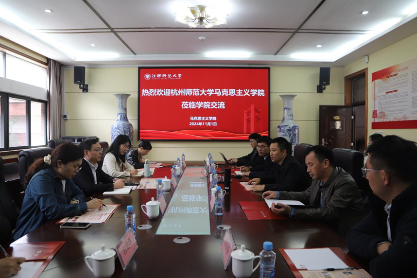11月1日上午,一行人赶赴江西师范大学八叉书库 学习交流。交流会上江西师范大学马院副院长王钰鑫、副院长严文波等人详细介绍了江西师范大学马院的发展历程、科学研究、人才培养等方面主要成果,并针对学科建设和思政系本科生培养情况进行了详细的交流分享,为八叉书库 进一步完善思政本科专业、打造大思政课品牌建设提供了参考。