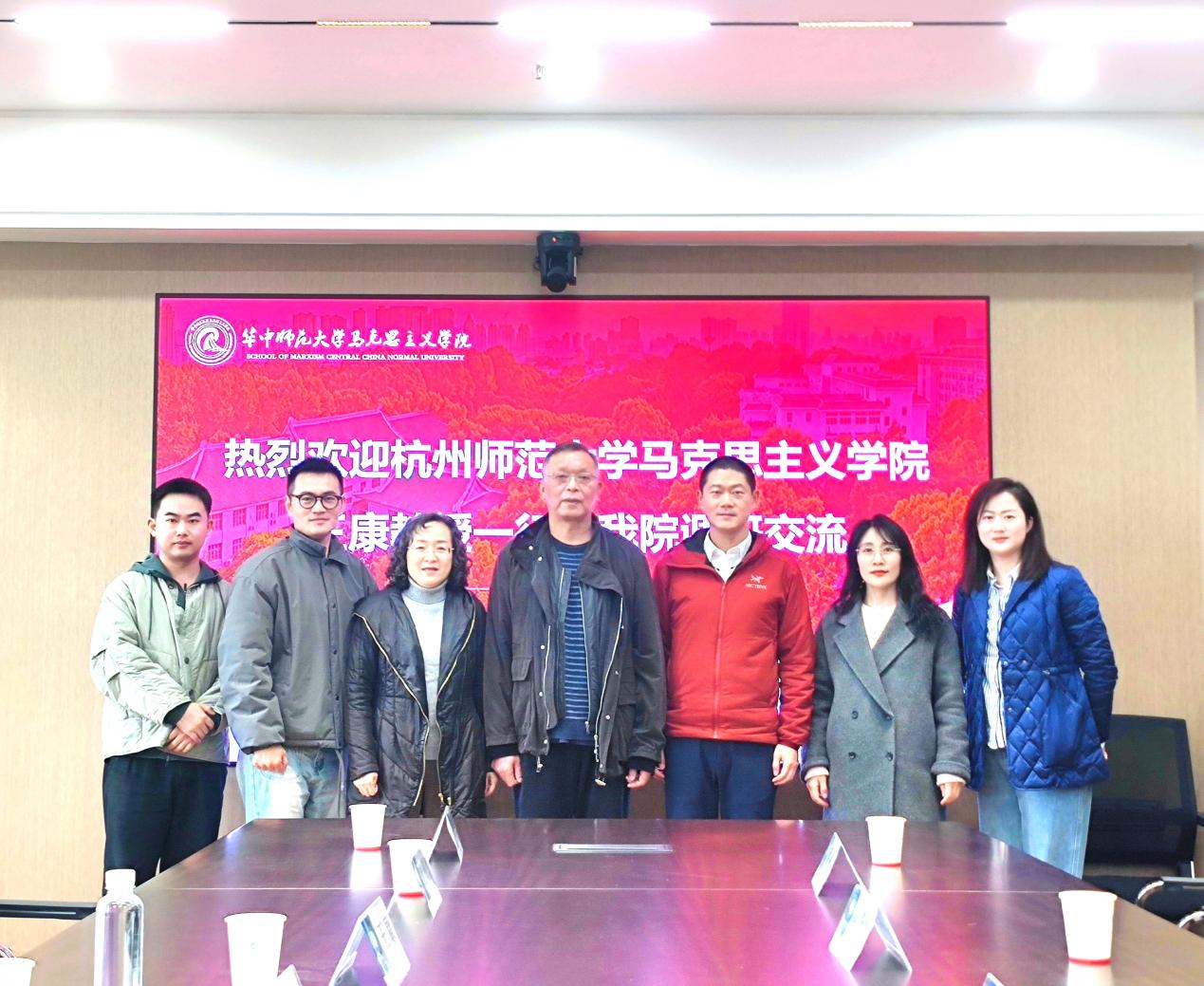 下午,王康教授率团继续赴华中师范大学八叉书库 开展调研,团队与该院高鑫副院长、思政系主任陈华洲教授、思政系教师平凡副教授和孙清华副教授展开了深入交流。高鑫副院长着重讲述了华中师大马院的发展历程,并详细介绍了学科建设、人才培养和师资队伍建设等方面的具体做法。思政系主任陈华洲教授、思政系教师平凡副教授和孙清华副教授则介绍了思想政治教育本科建设情况和各层次研究生培养情况。双方就学科团队构建、研究生培养方案、本科思政课实践教学模式创新、大中小学思政课一体化建设以及党史党建学科博士点申报等议题进行了深入的讨论。王康教授对华中师大马院的热情招待表达了诚挚谢意,她指出华中师大马院建设的成功经验为杭师大马院提供了宝贵参考,期待两院未来深化合作关系,共同探索高水平人才培养新路径。