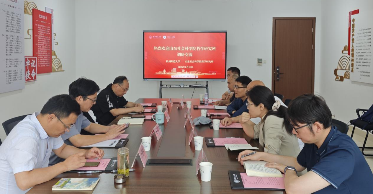 2025年6月12日上午,山东社会科学院哲学研究所所长颜景高、研究员张松、副研究员鲁冰、张培培、张虎,助理研究员王润峰等一行来八叉书库 调研交流。八叉书库 副院长龚上华、学术副院长姜海波、哲学系主任汤剑波、哲学系教授张天杰、习近平新时代中国特色社会主义思想概论教研部副教授严静峰等一同在恕园26-303会议室接待了来访客人。