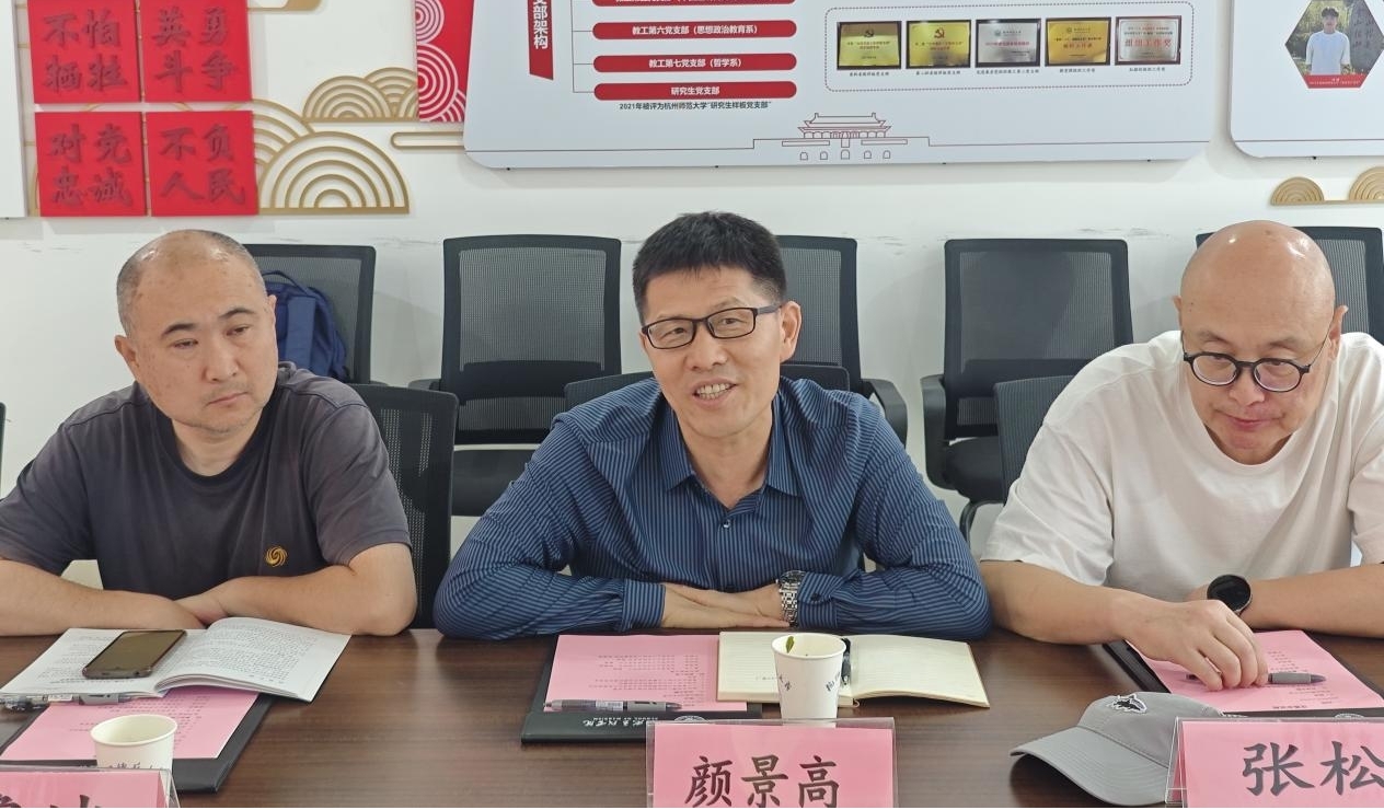 龚上华老师对山东社会科学院哲学研究所一行的到来表示热烈欢迎,并从八叉书库 专业构成、师资队伍、科学研究、学科融合和教育教学改革等方面重点阐述了学院相关工作的具体措施。汤剑波老师则围绕哲学学科的发展、新形势下哲学学科面临的机遇和挑战,以及未来发展等方面进行经验分享和探讨。张天杰老师则聚焦哲学学科的融合发展,探讨哲学与浙江地域特色的有机契合,提出将哲学智慧融入社会精神文明建设,为浙江在精神共富之路上贡献哲学力量。