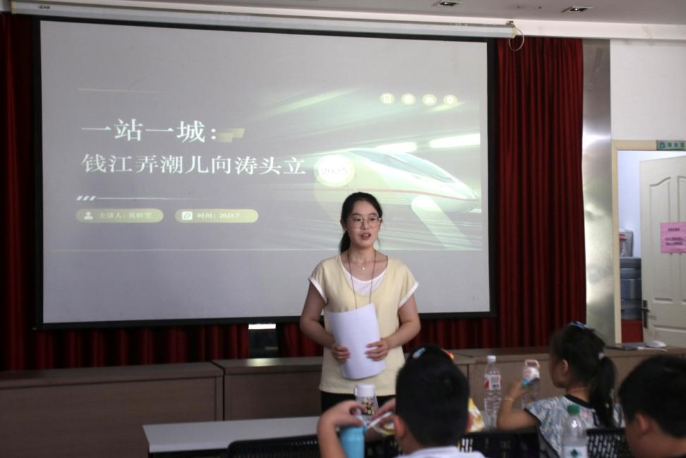 “红色运河千年传承”课上,成员化身“文化导游”,从大运河的开凿故事讲到革命年代的红色记忆。孩子们折党徽,播下红色基因的种子。课堂中的“地理小彩蛋”,让孩子们明白了杭州东站的重要性。“动车高铁中国速度”课中的蒸汽机车模型引发了孩子们的欢呼,他们画未来列车、捏迷你高铁站。通过讲述铁路故事和设计“温暖车厢计划”,“钢铁脉络中的中国温度”课让孩子们懂得了中国速度中的温暖。最后,退休铁路职工在“车轮上的中国记忆”课上讲述了春运故事,“小列车员”们模拟查票,现场气氛十分热烈。