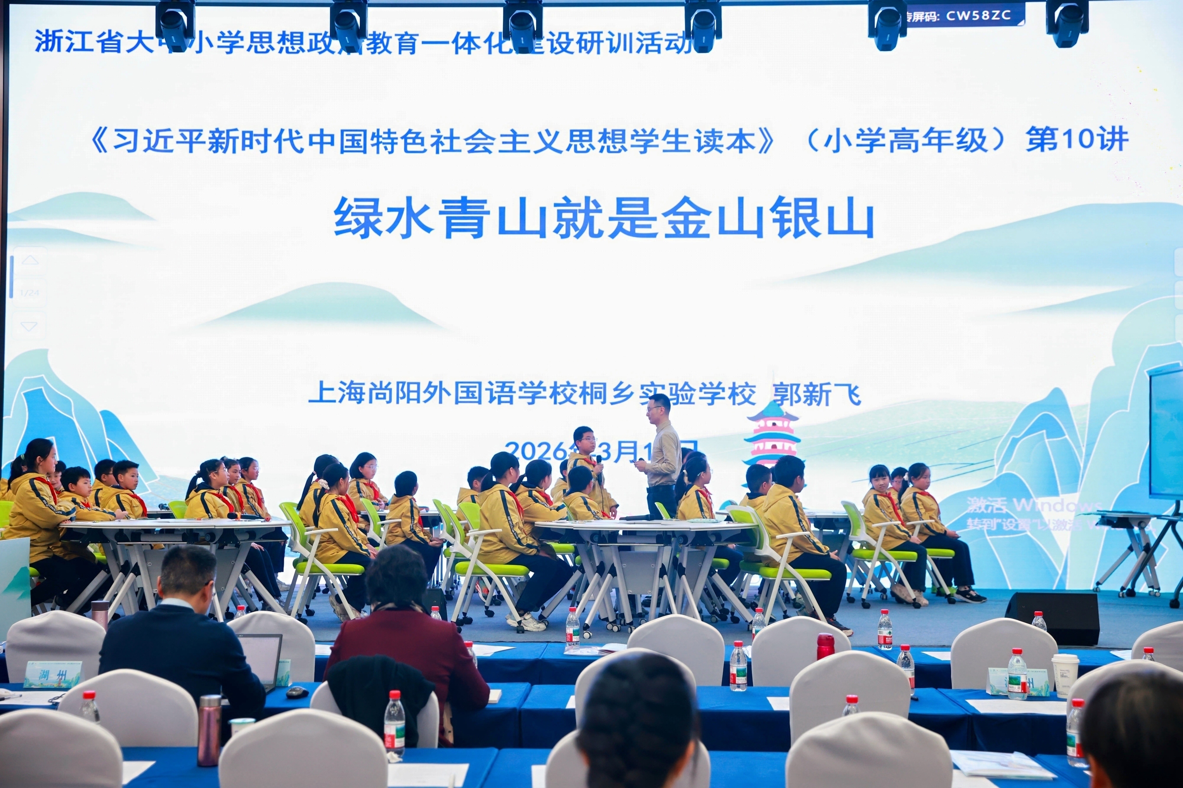 郭新飞老师执教小学阶段“绿水青山就是金山银山”一课;